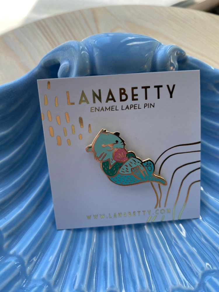 Cute enamel pin of an otter from Vancouver-based designer LanaBetty. Never removed from package or used.