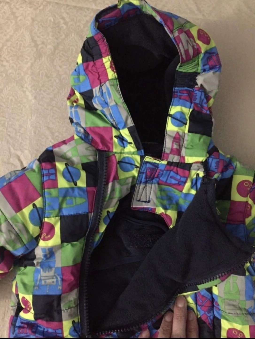 Colourful & has spaceships on it.