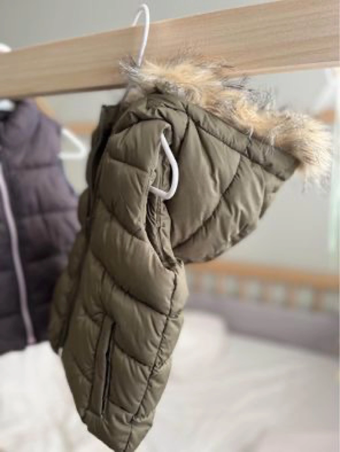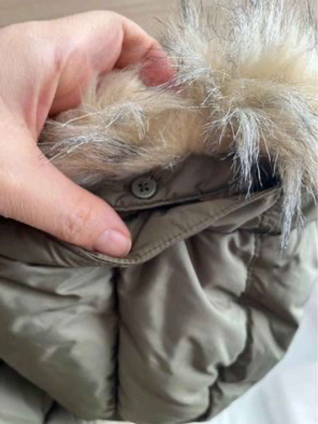 Faux fur unbuttons from the hood for washing of vest.