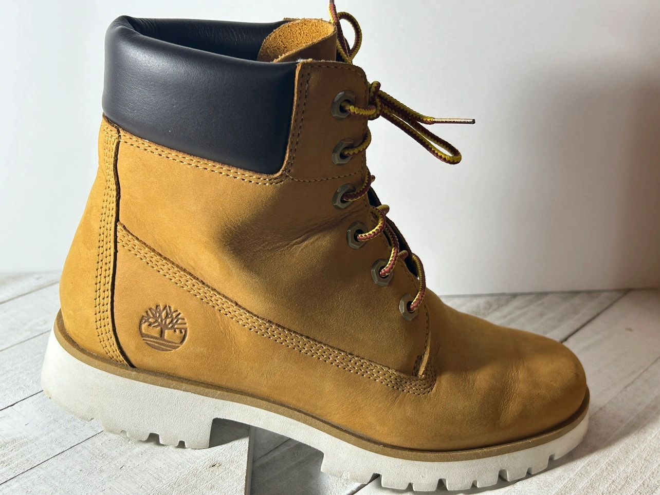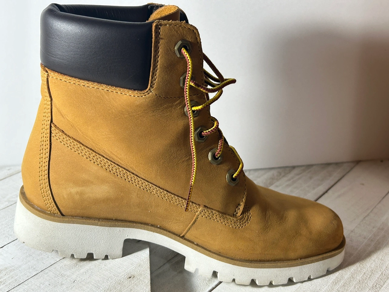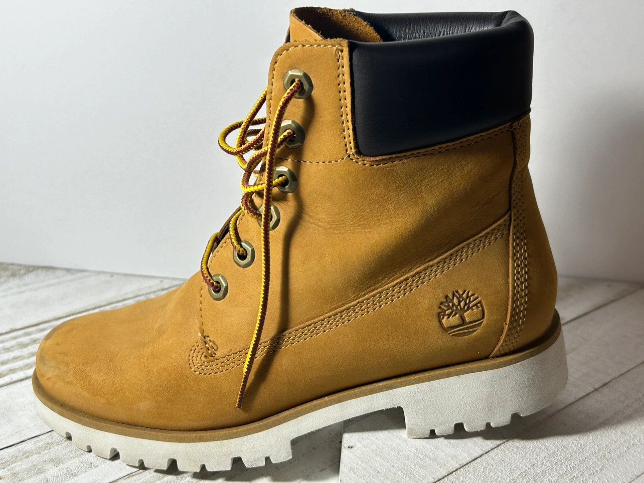 Authentic pair of woman’s Timberland boots overall in great shape. Has some minor scuffing on the outer leather. Has some minor wear on the bottom sole of the shoe. The inside of the shoes are near new. Comfortable insoles.