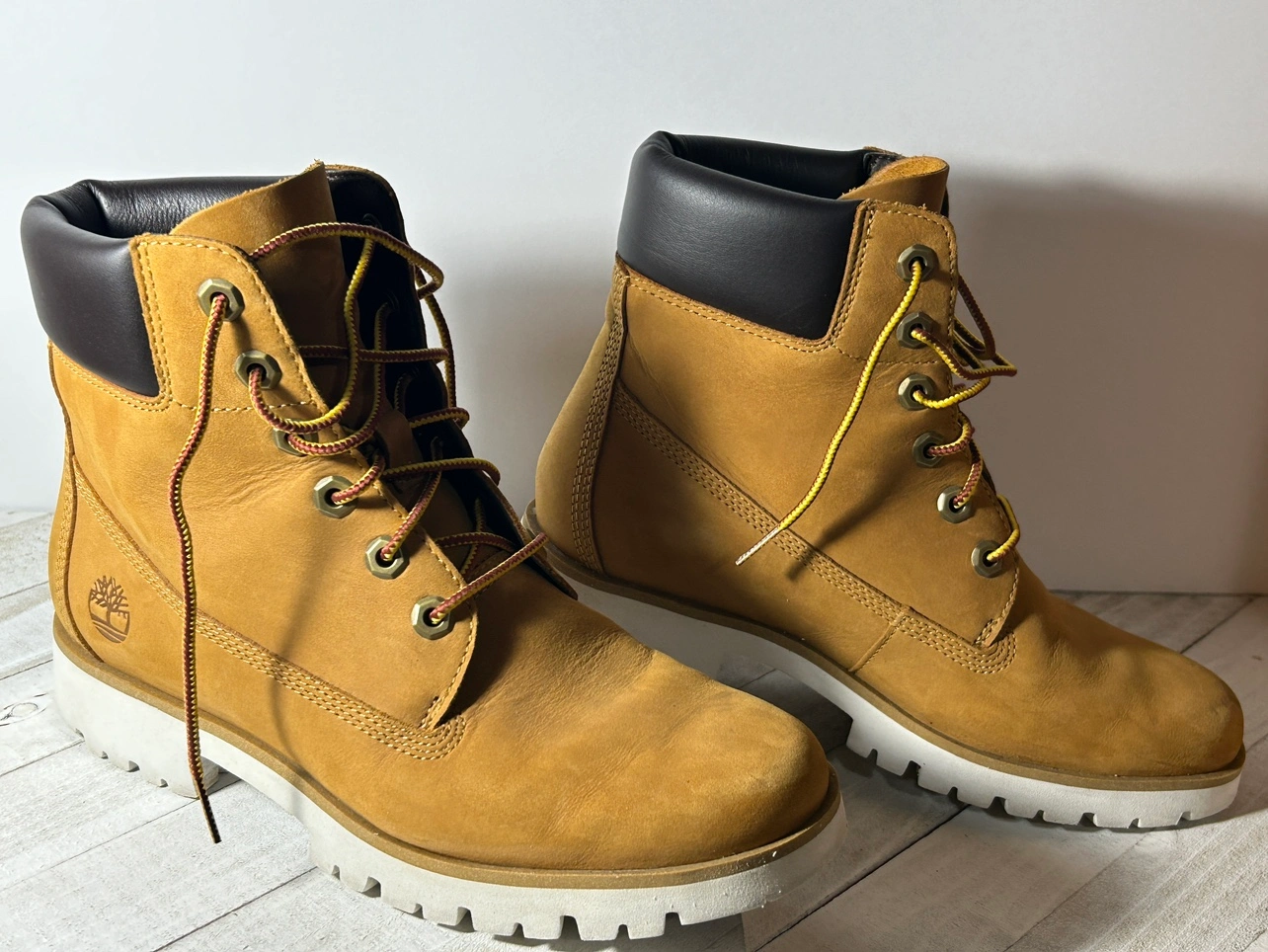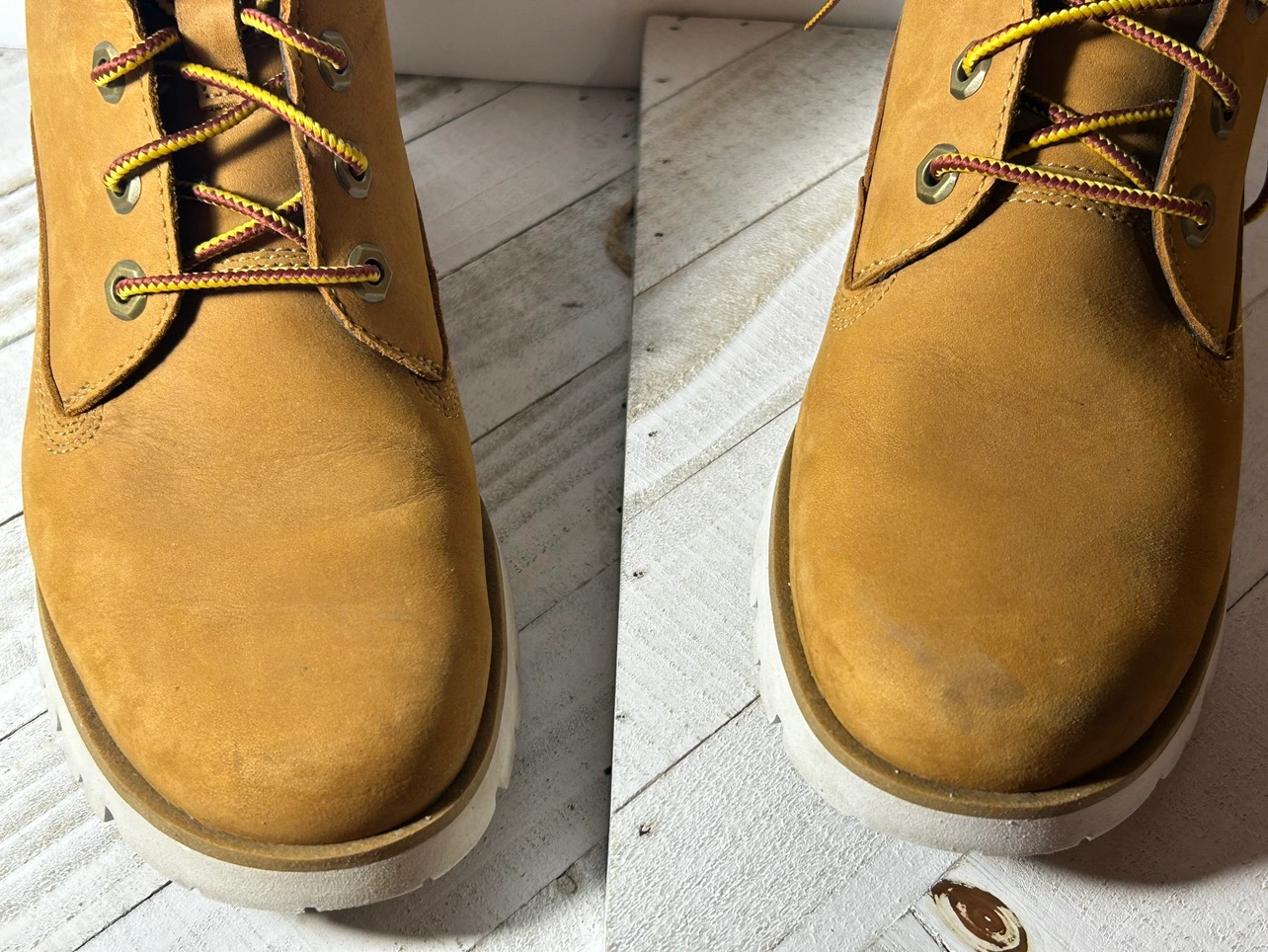Since these shoes are preworn and has some minor surface scuffing. You can get the official timberland boot cleaning kit and waterproofing on their website.