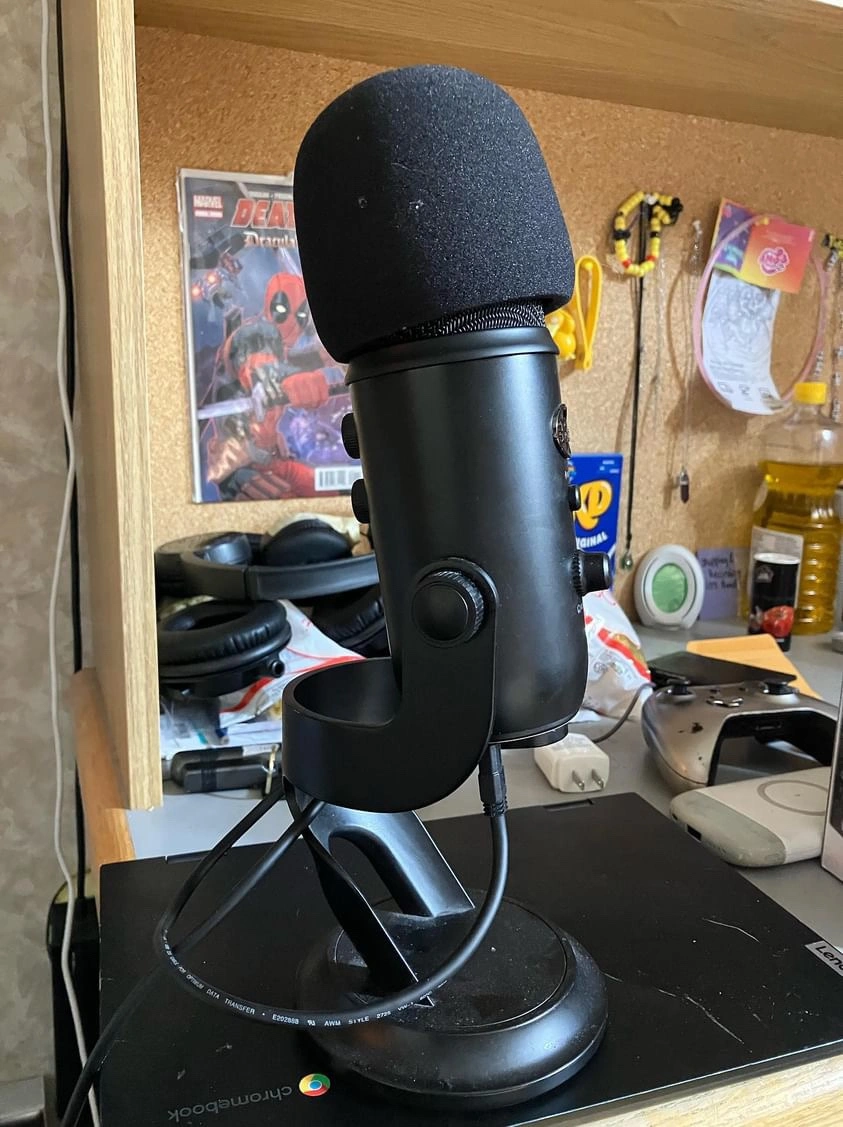 original price about $140, don’t use anymore. great for podcasting or making music, usb cable plugs into computer or whatever device you are using and pop filter is included. used but great condition