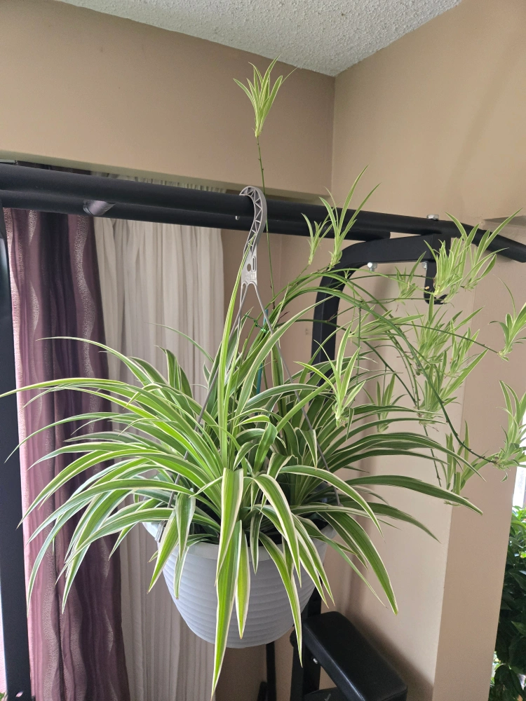 Very large and healthy spider plants with a lot of babies in 11 inch hanging pot.