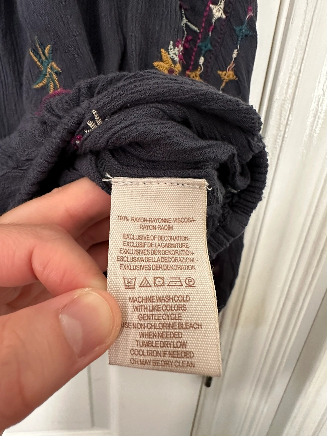 • laundered with care - natural detergent, hung to dry