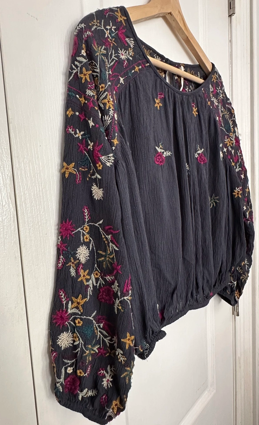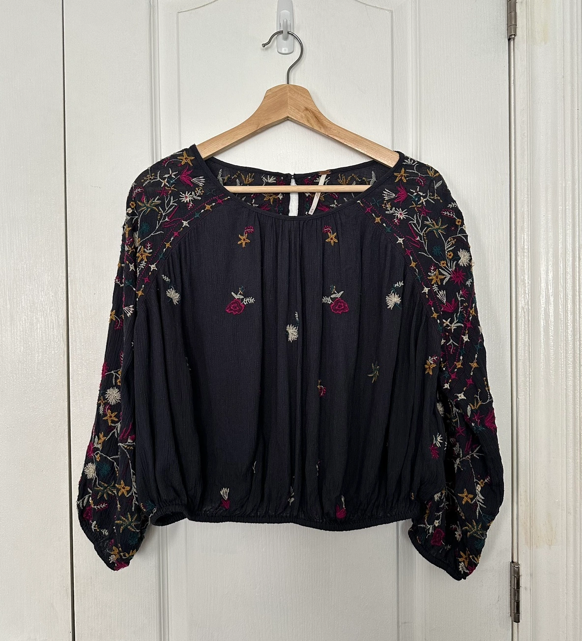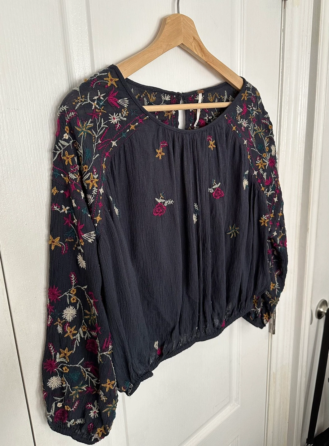 Free People “Wild Flowers” blouse • size M • indigo