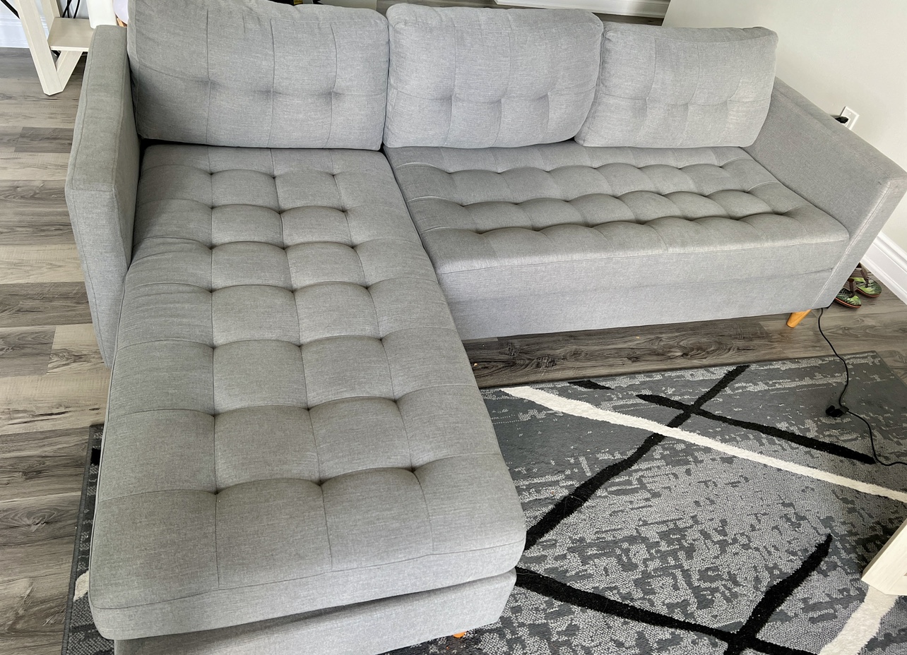 Trying to sell the sofa sectional and coffee table with two side tables as i moved into a new place so want to change it.. Sofa is in grey colour like new cushions are removable .. with the reversible chase firm cushions.. fabric is still intact and new no rips no seem separation.. price is advertised with the coffee table.. sofa separately is for $400