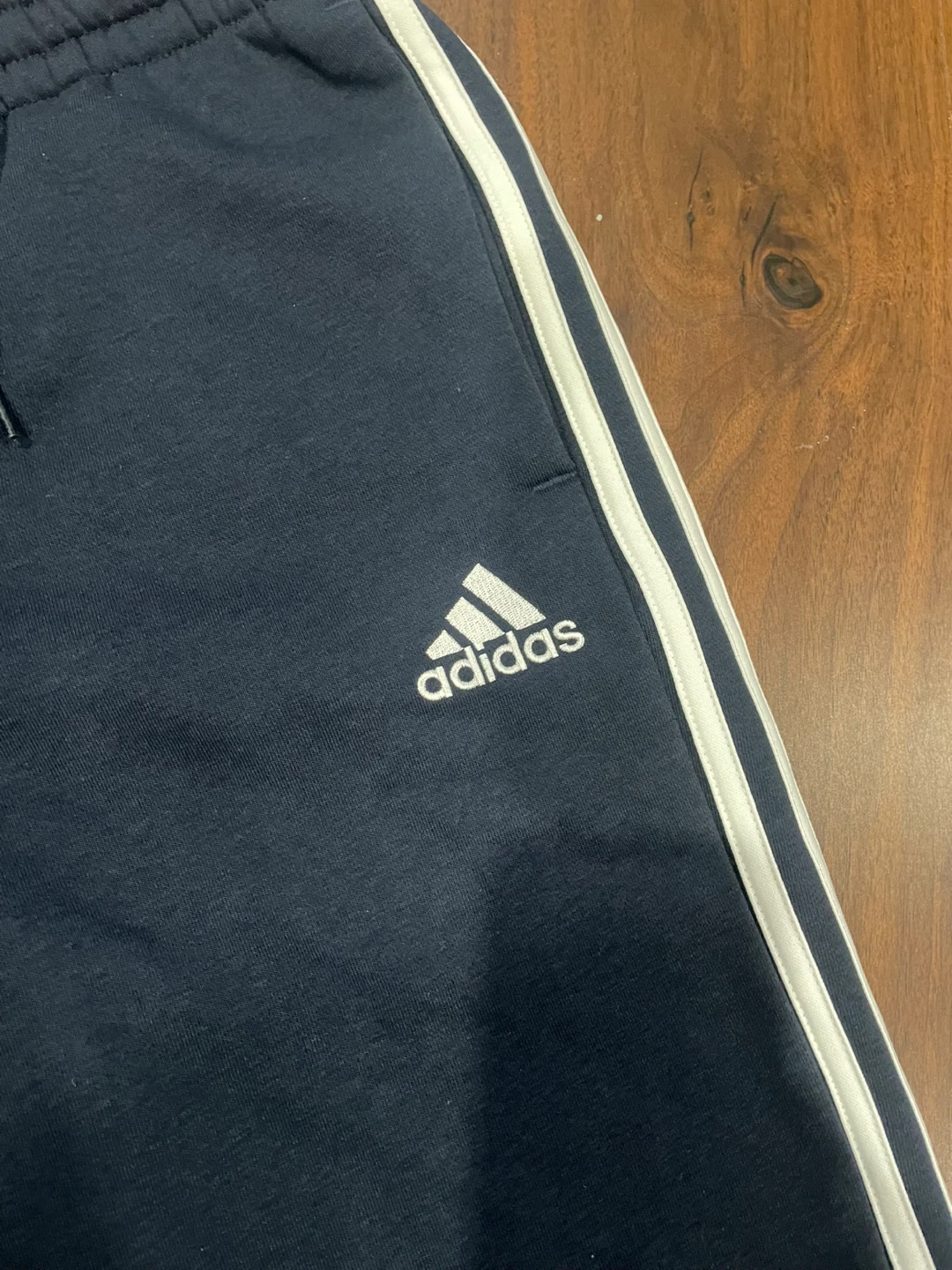 Selling navy blue adidas shorts. Stored in a smoke-free home. They fit more on the baggier side and fit at knee length