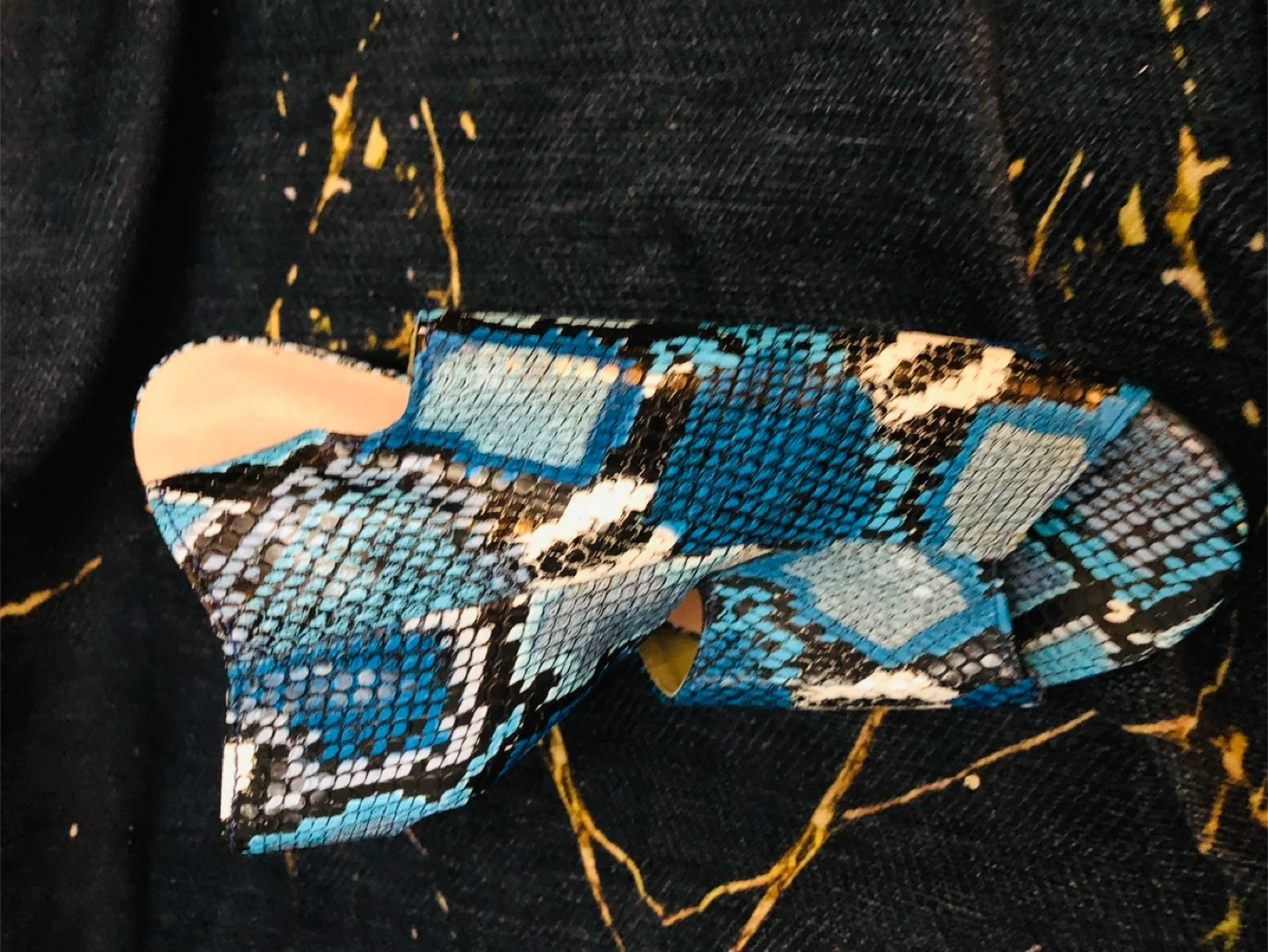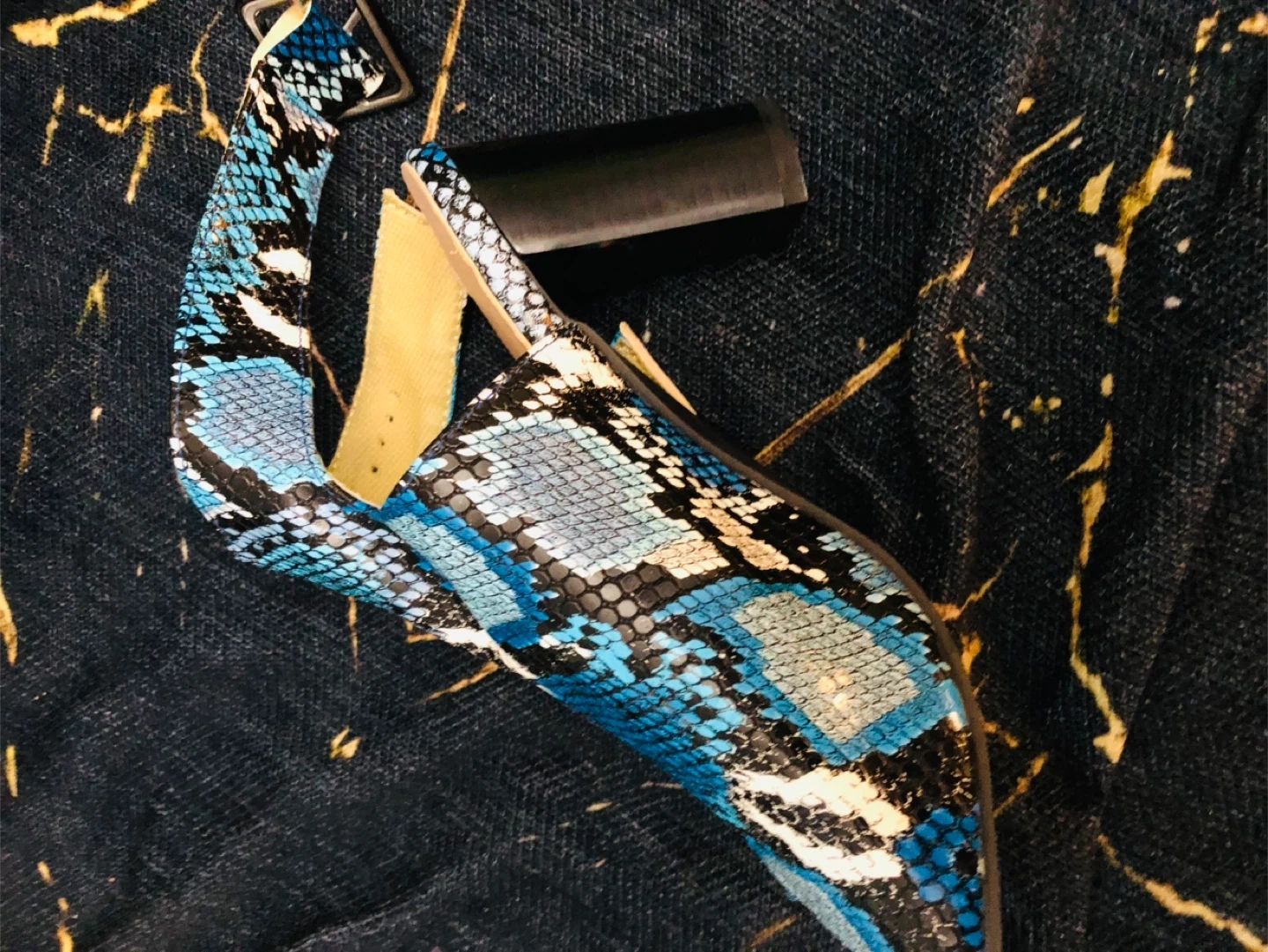 Blue Snake Print leather Heeled Sandals Size 39