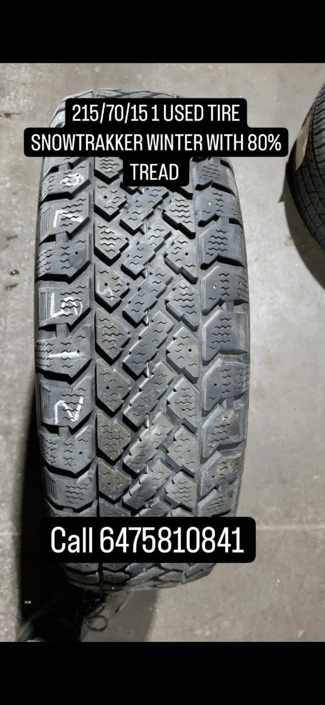 23Selling a used 215/70/15 Snowtrakker winter tire. It has about 80% tread left, ready for the winter season!