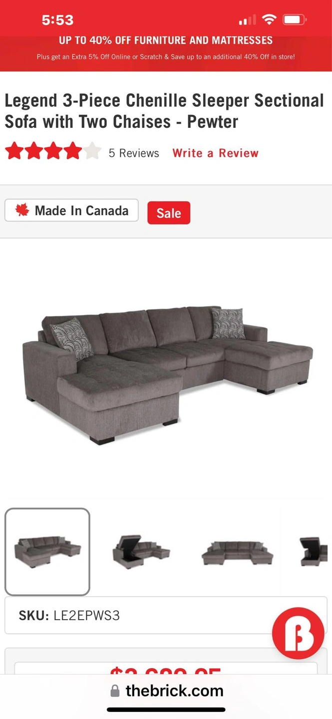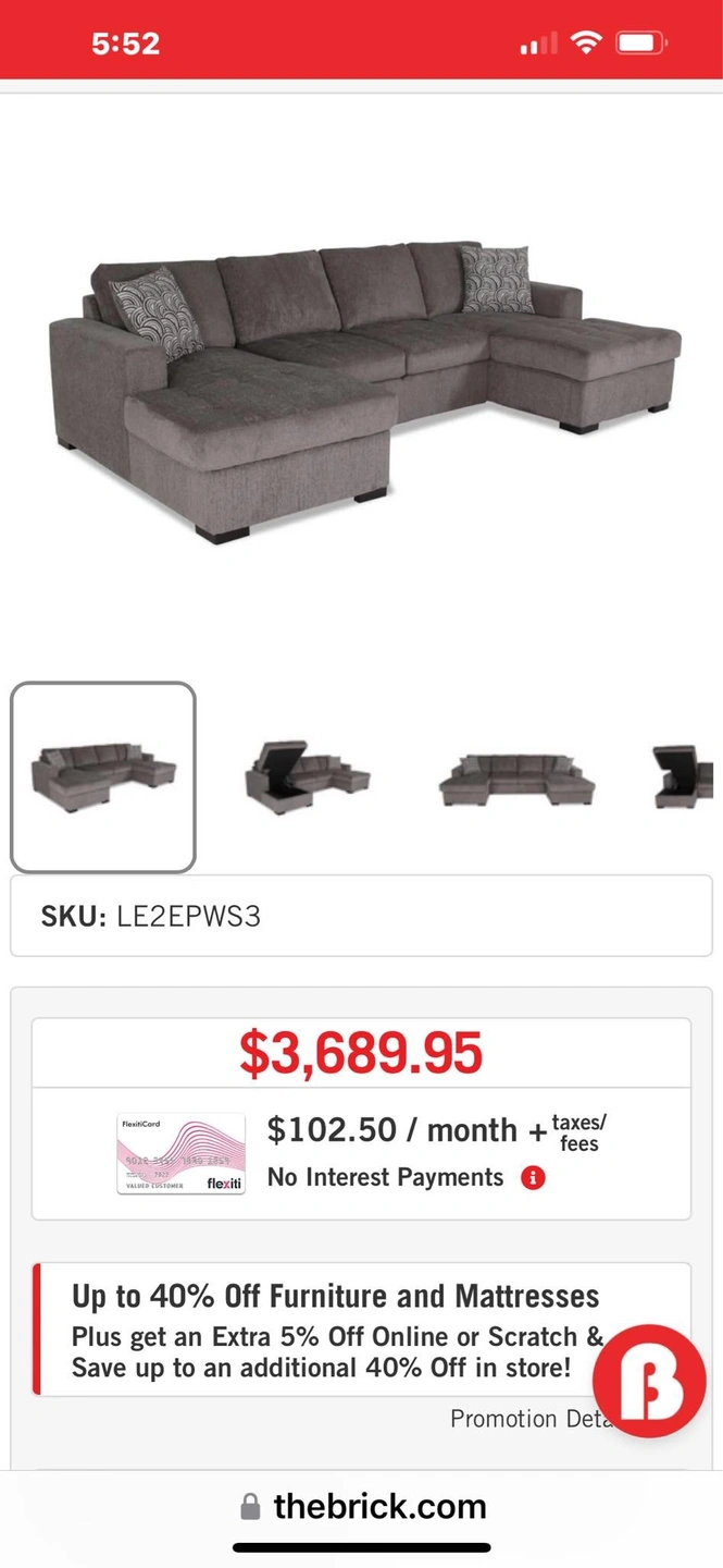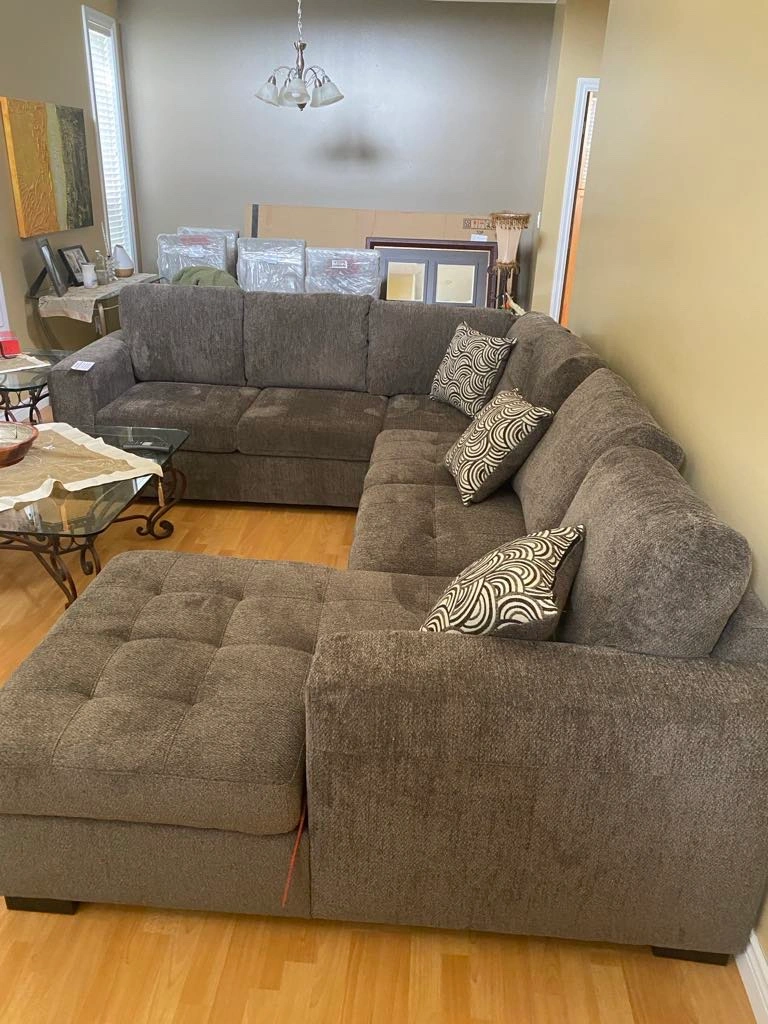 We purchased this full set from the Brick when we moved in our large townhouse 2 years ago we kept in our 2nd living room and was barely ever used. It is in excellent condition almost brand new. We are downsizing to