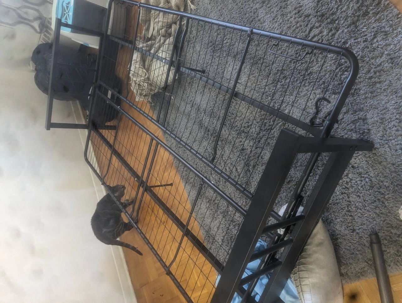 There is a cushion, with zippered covering but needs to be washed. Take both pieces or just the frame.