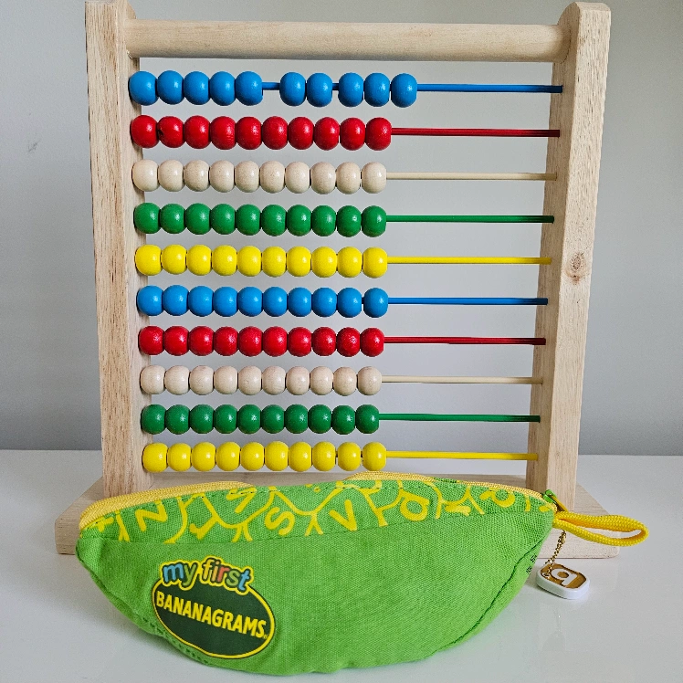 Traditional abacus wooden bead counting frame with brightly colored wooden beads