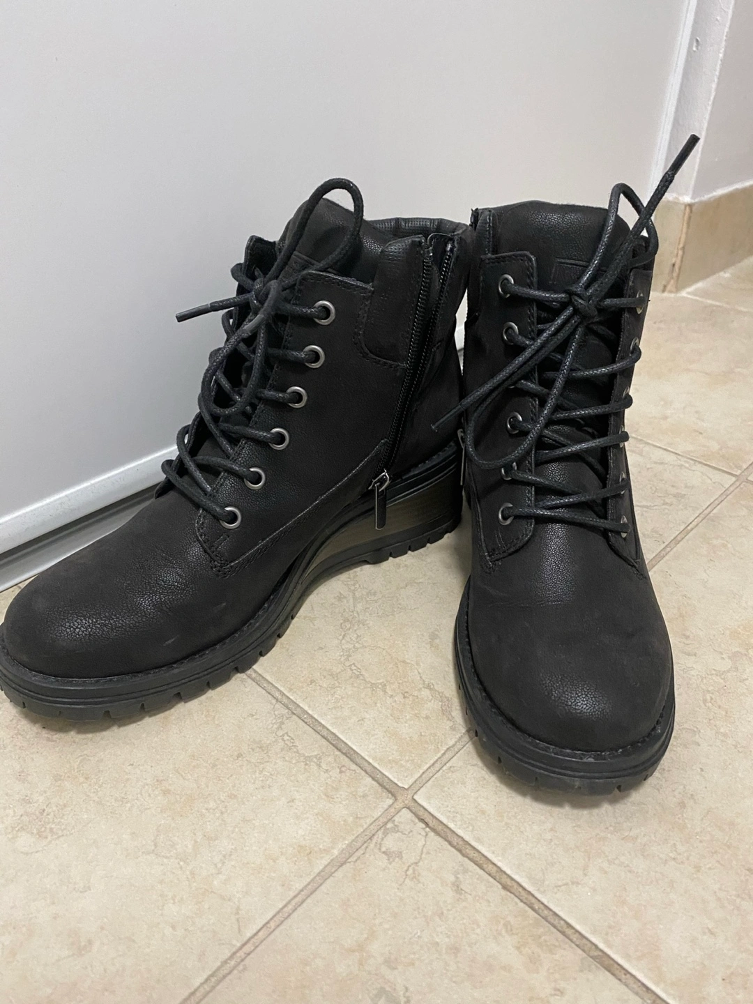 Lace up stying with a side zipper for easier on/off