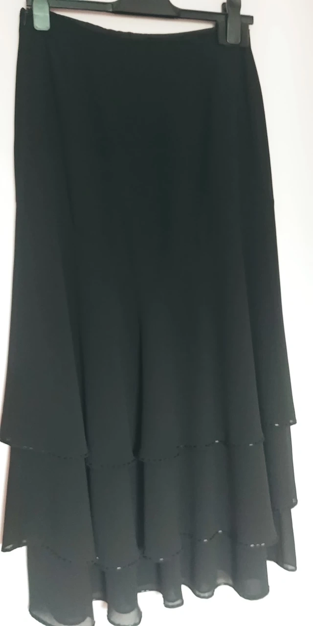 From Laura beautiful bidet layer of Chiffon flares S. 4 could be sized up to 10 by shortened from the waist line. Never worn.