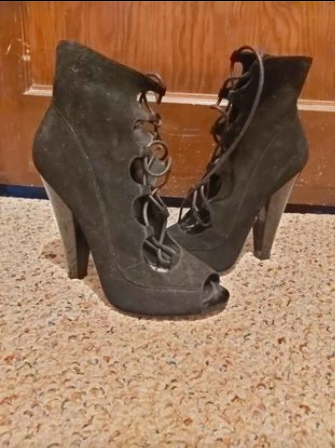 Gorgeous black suede lace up heeled booties from BEBE. Size 9. Leather sole. Never worn.