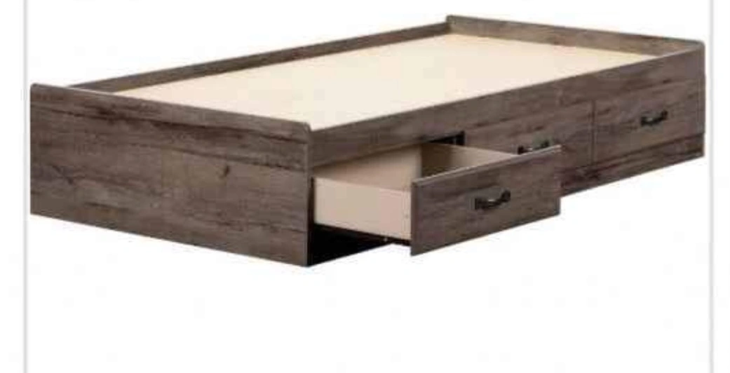Twin size bedframe w 3 bottom storage drawers. Comes disassembled. Need to re-assemble.