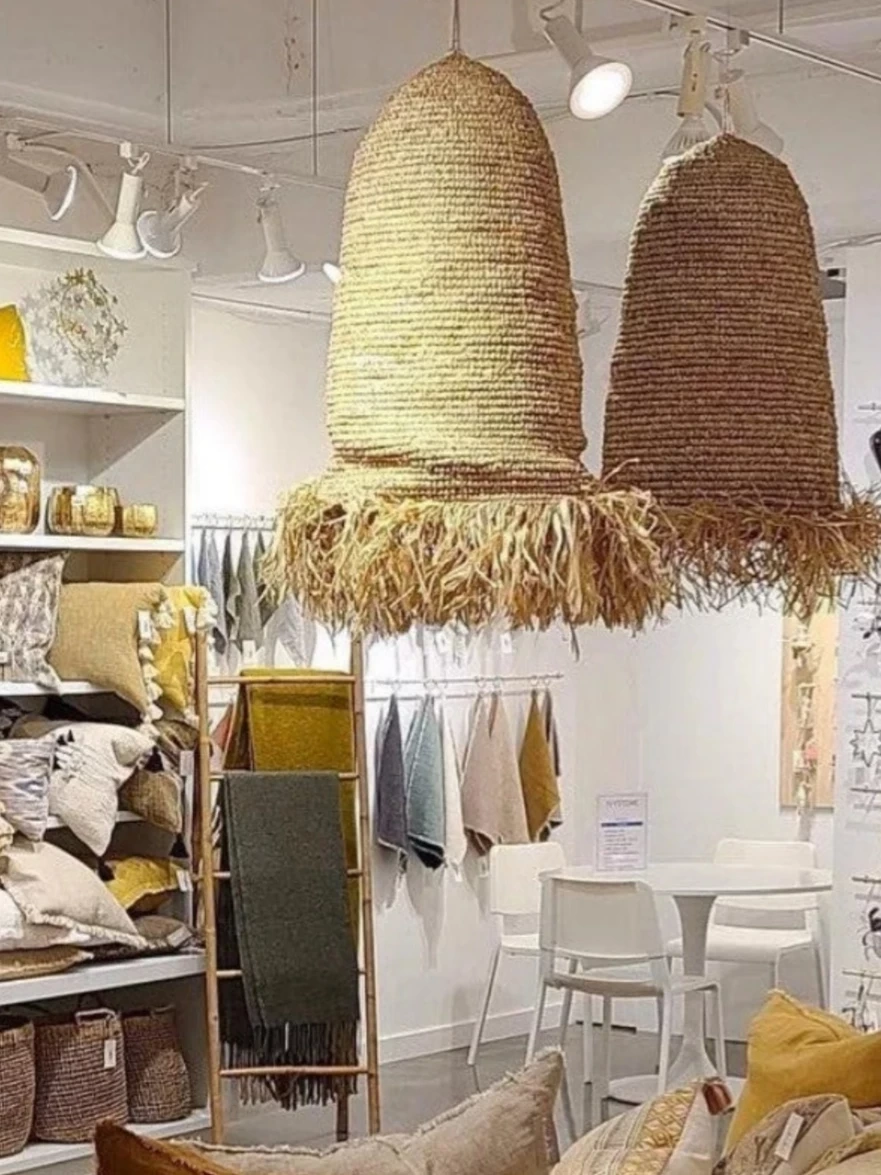 BRAND NEW, NEVER USED, WITH TAGS Retails for $440.00 ($195 Each x 2 + tax) Includes 2 brand new bohemian style lampshade pendants as shown in pictures. (discounted / reduced again from my original post of $220 to $175 for this set of 2). Retails for $440 - my price of $175 foe the 2 lampshades is about 60% off retail price! Brand: Indaba 🔗Link for reference https://innerbeach.com/products/rumbai-raffia-lampshade?srsltid=AfmBOoqwfg10SV9PQMYcCeqUlEhPGVsKaB0NG3rTQEY_sk3xzh_9BCX5 Their extra large size makes the the perfect hanging lampshades to use over your dining table, island bench, or covered porch and cabana for a coastal vibe. They add natural texture and a boho appeal to your home decor. SIZE OF EACH LAMPSHADE: extra large 16" x 16" x 24"H ORIGIN: Handcrafted by skilled artisans in India MATERIAL: Sisal CARE INSTRUCTIONS: Hang indoors or in covered area only. Wipe clean