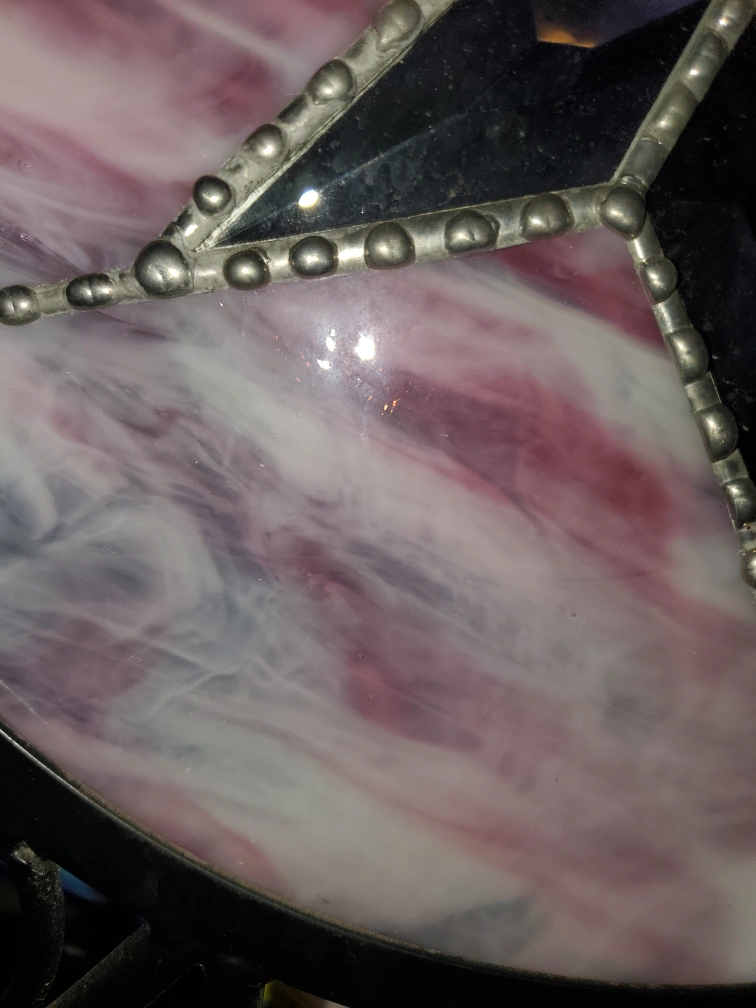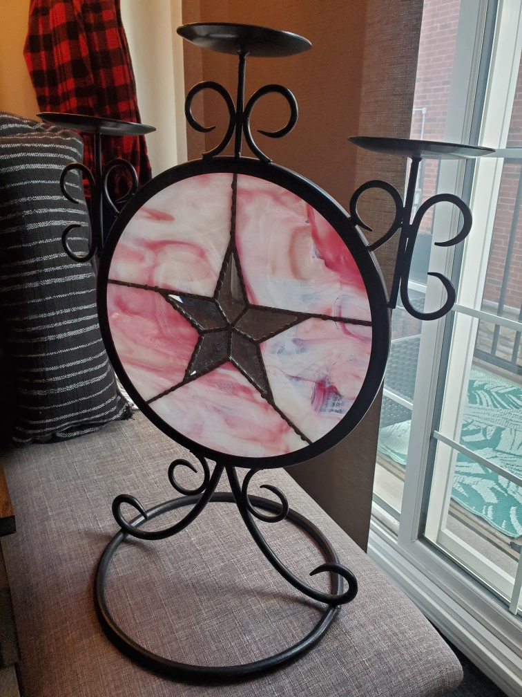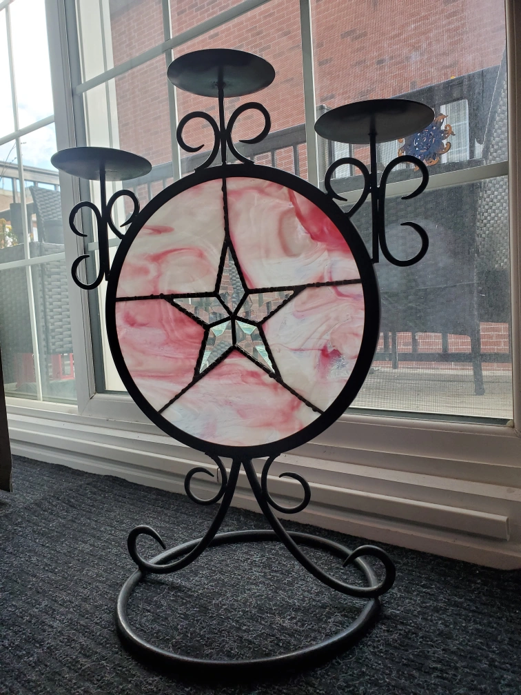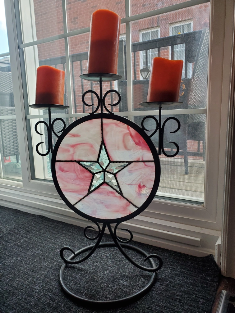 Large stained glass candle holder.