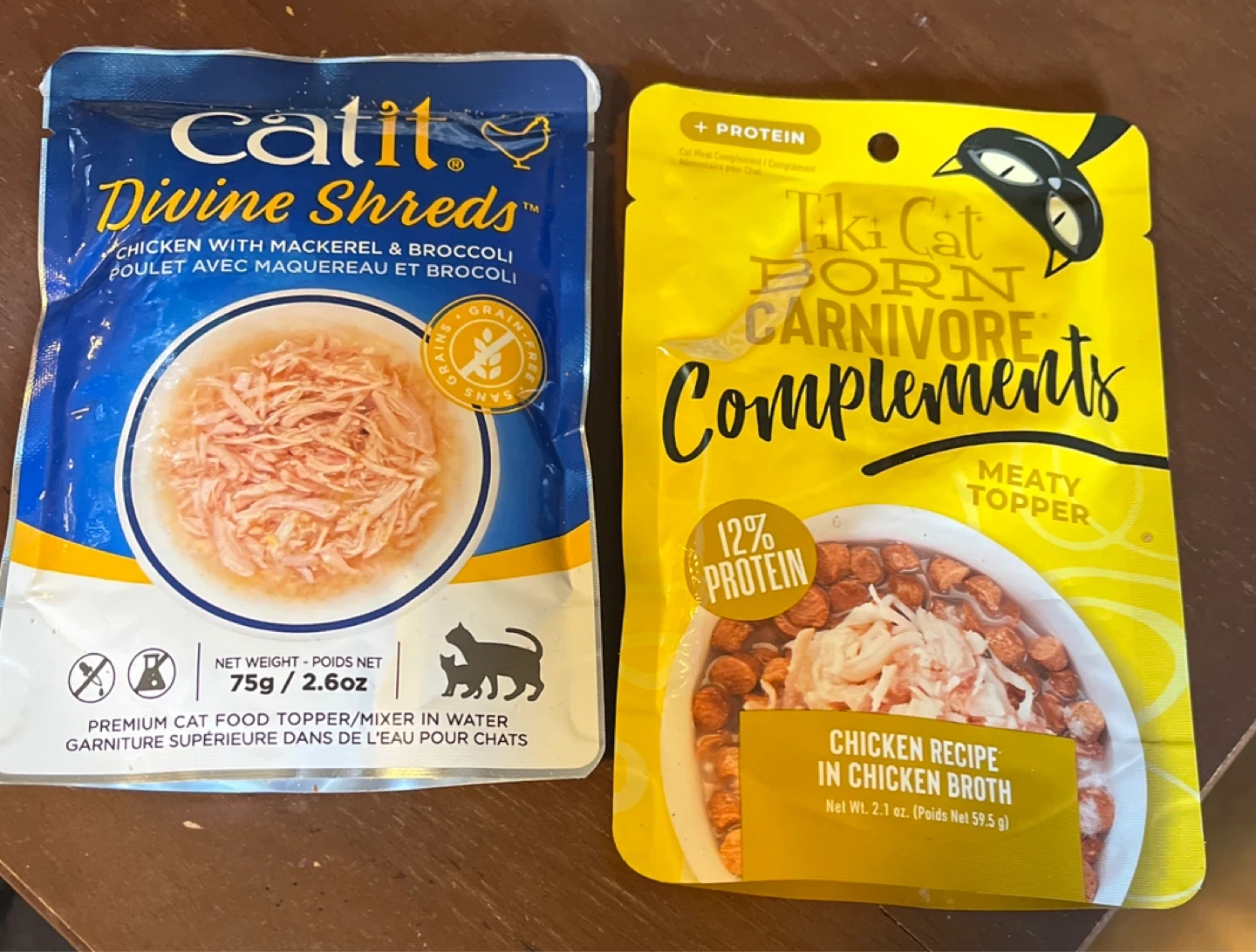 These foods / treats have kept them healthy and switching could cause problems. Instead of wet we use the simplest toppers, add water and call it soup. These treats are the ones all three of them like so we focus on those. We avoid larger animals (4 legged) food so we can control weight better. And we keep down fish as they are all male and working on decreasing the chance of urinary crystals.
