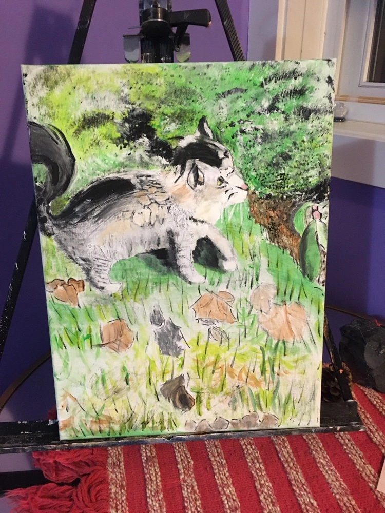 Original 12x16 inch acrylic painting of a kitten in the grass.