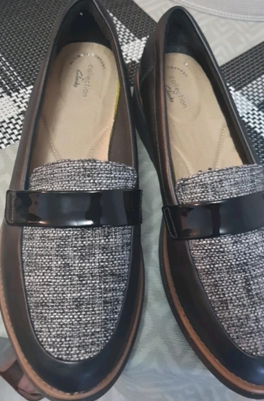 I have a pair of Clarks Collection loafers and Aravon black shoes available. They are in good condition and ready for a new home!