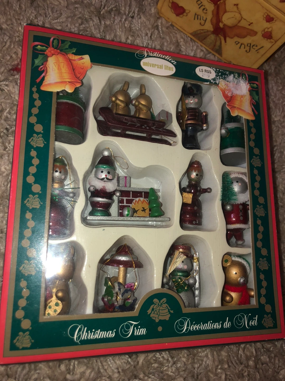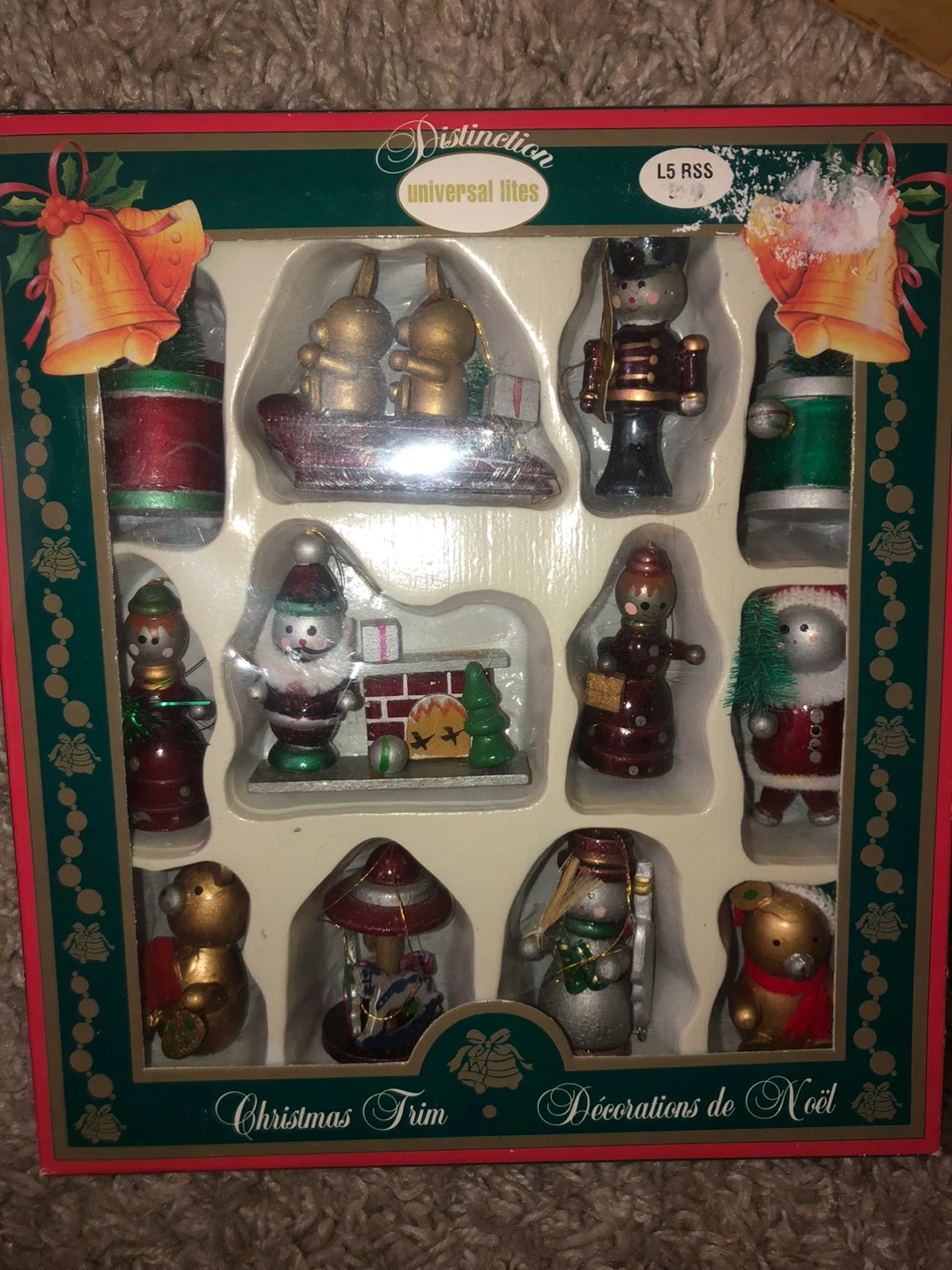 Get ready to deck the halls with this adorable Distinction Universal Lites Christmas Trim set! It comes with a variety of cute ornaments to add some festive cheer to your tree or holiday decor. The set includes a mix of classic and whimsical designs, perfect for creating a cozy and inviting atmosphere this holiday season. Comes in the original box!