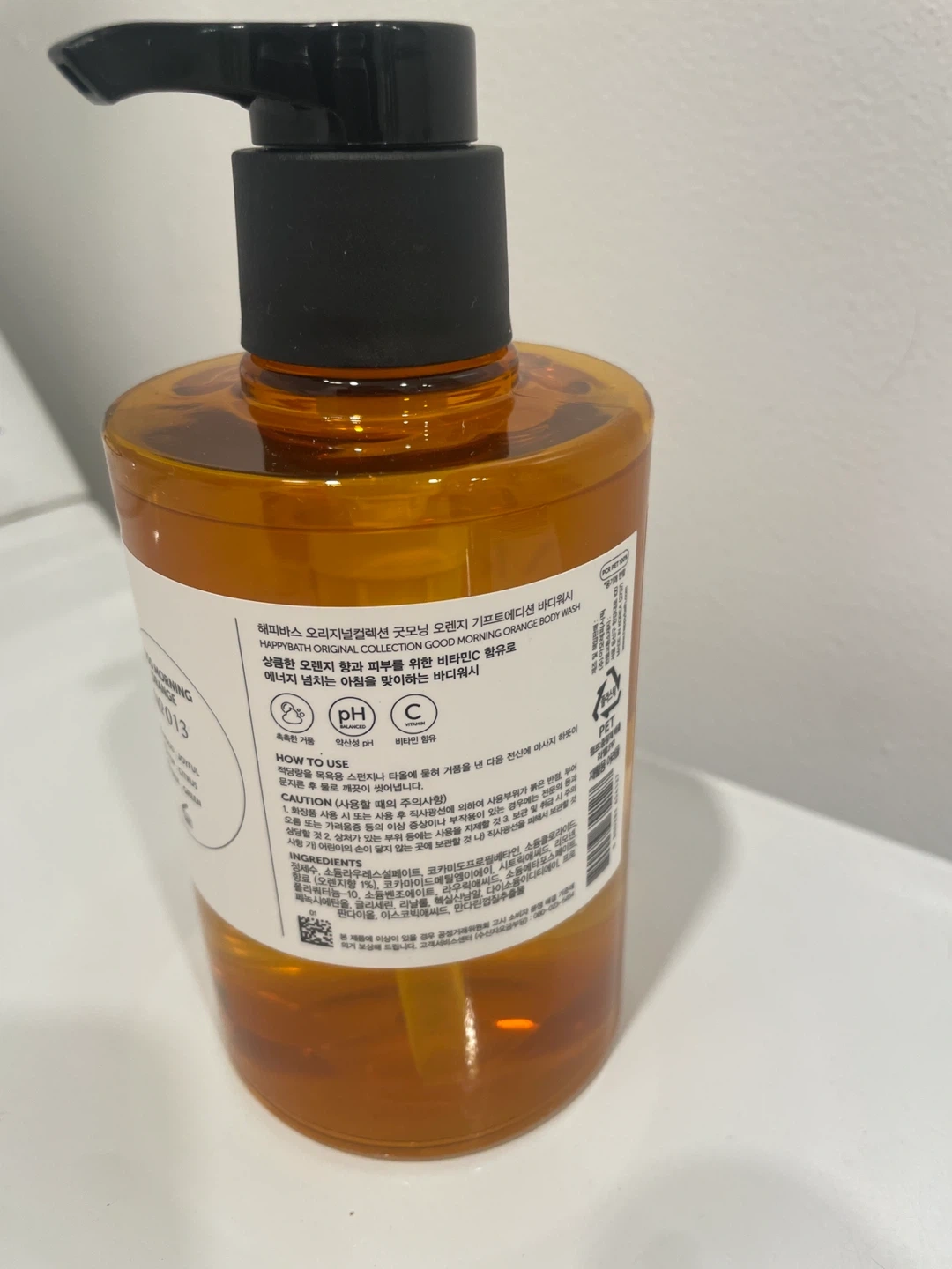 Happy Bath Good Morning Orange Original Collection Body Wash. It's a 490g bottle with a pump dispenser. Gentle cleansing and a refreshing scent!