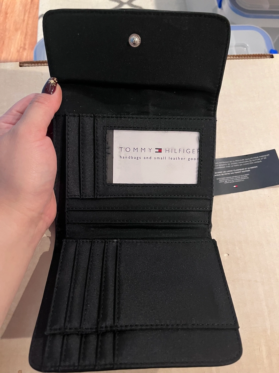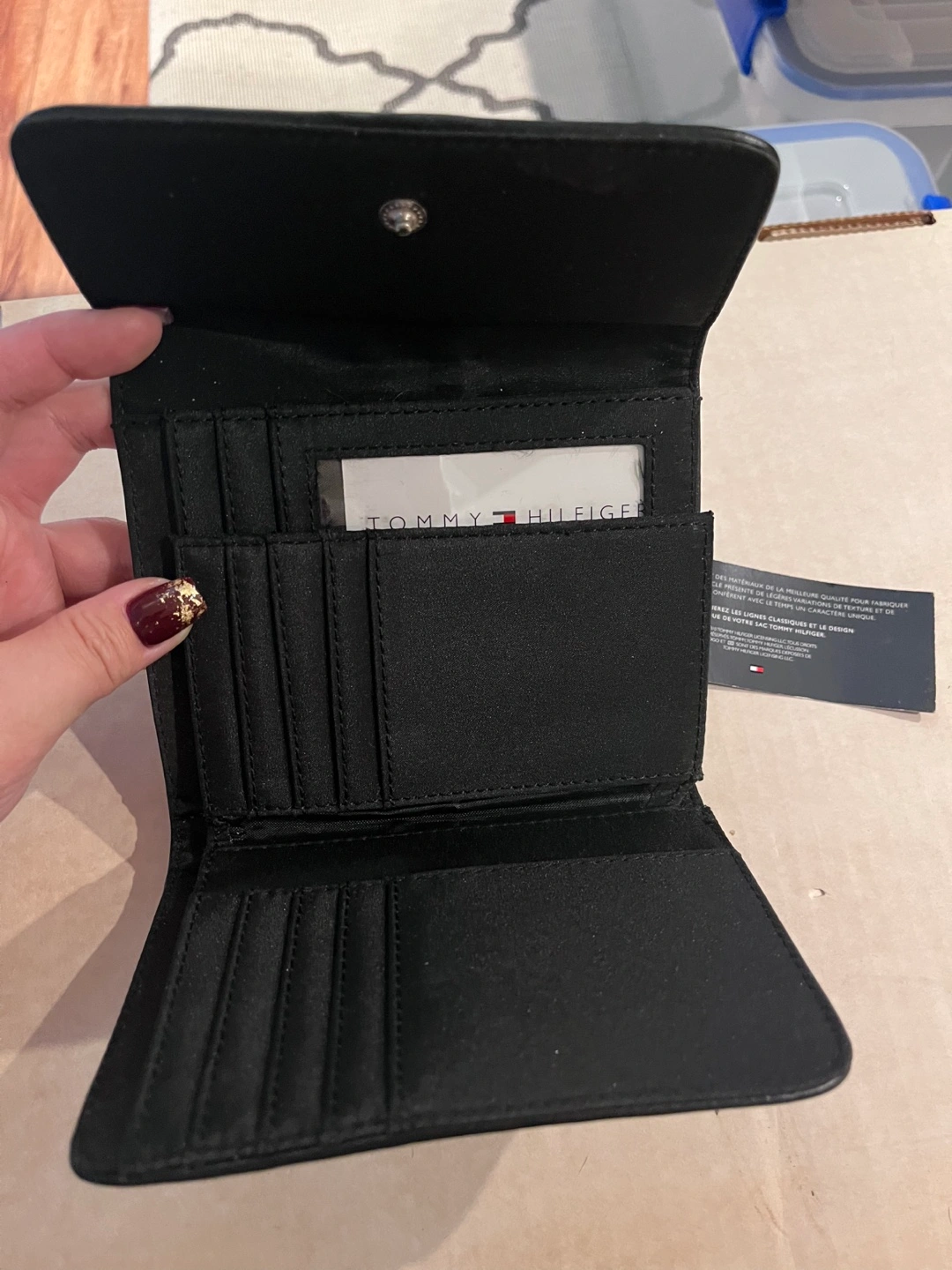 Tommy Hilfiger wallet in black with a geometric pattern.