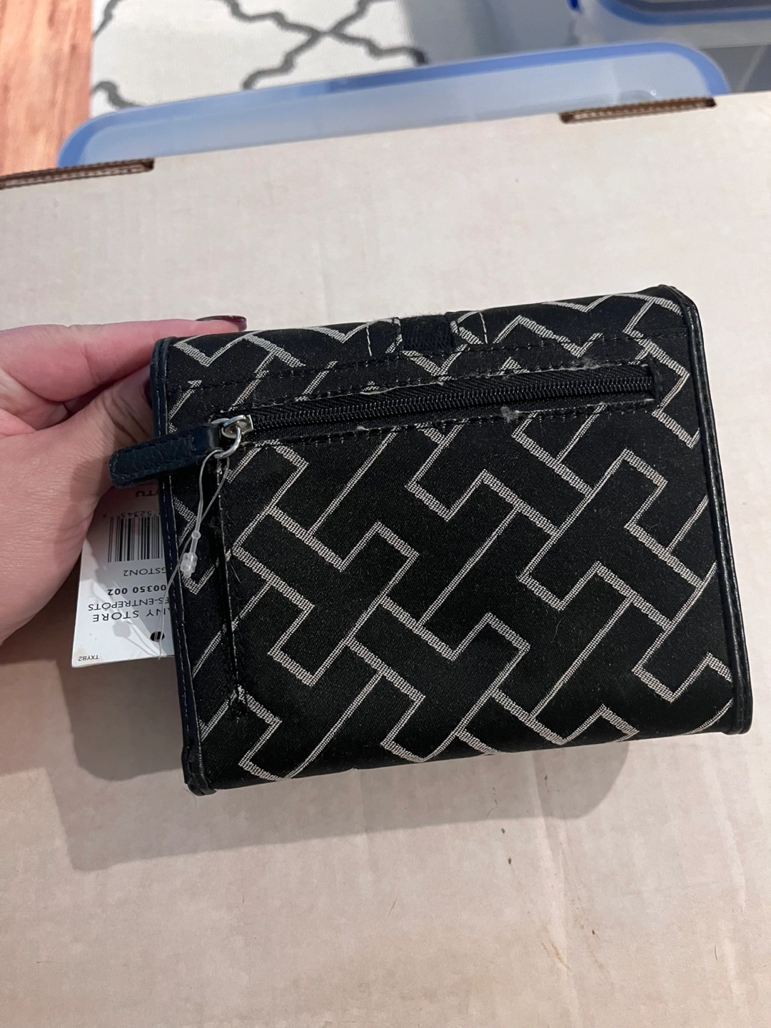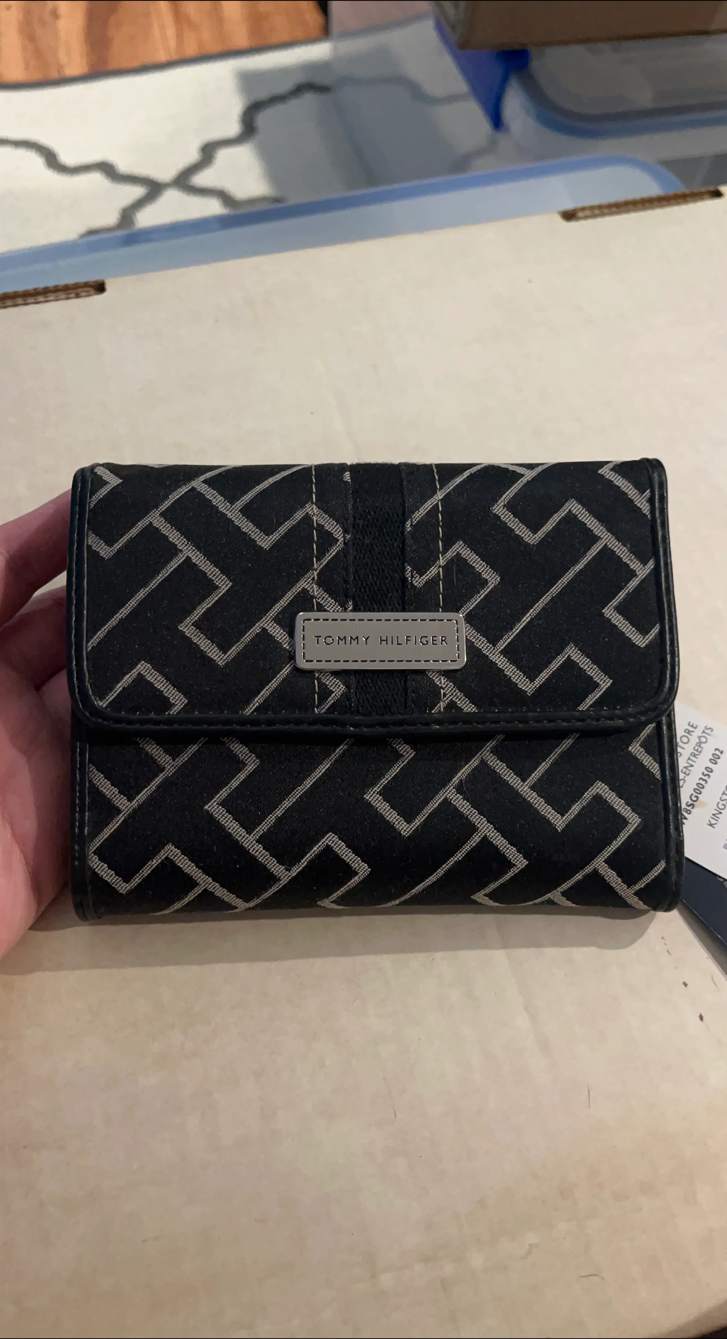 Tommy Hilfiger wallet in black with a geometric pattern.