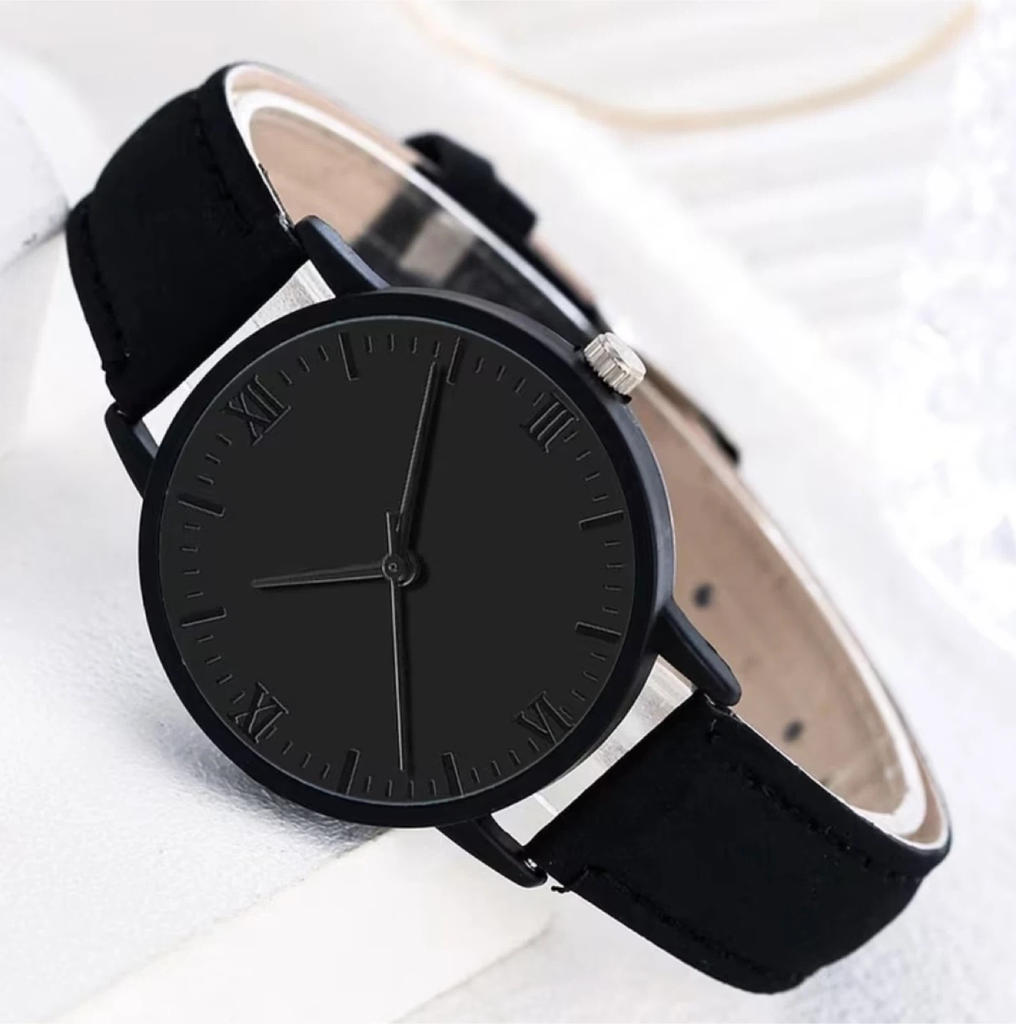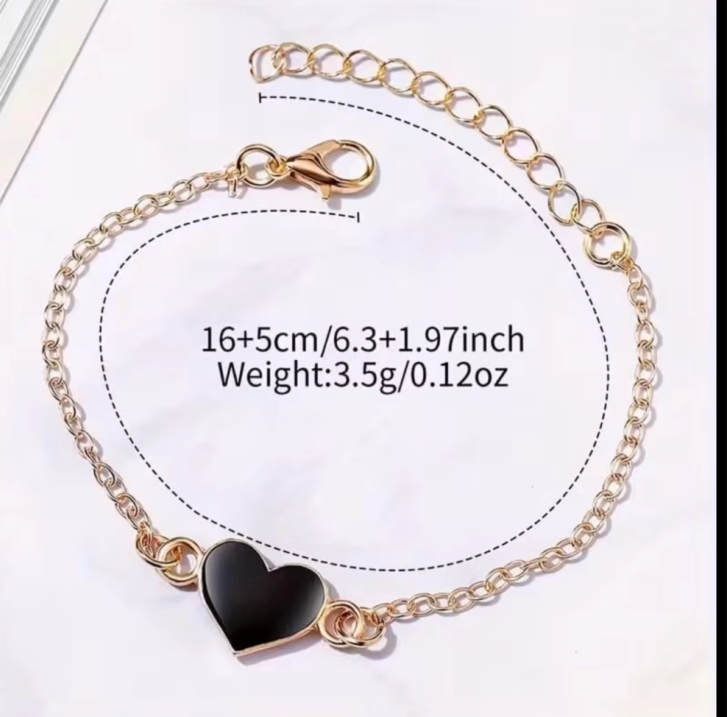 New set includes a black watch with a 3.4cm dial diameter and a black band. It also comes with a gold-tone chain bracelet featuring a black heart charm. The bracelet is adjustable with a length of 16+5cm.