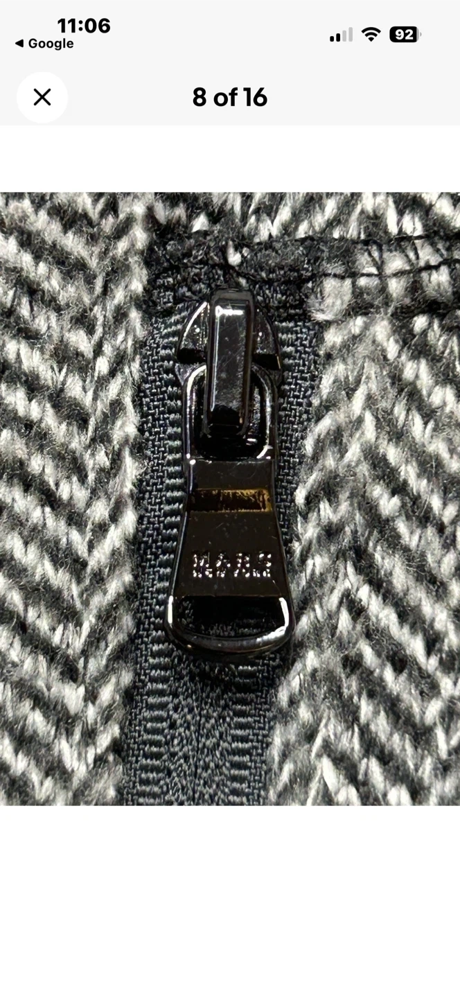 It features a herringbone pattern and a full zip closure. There's a zippered chest pocket and a patch pocket. LN