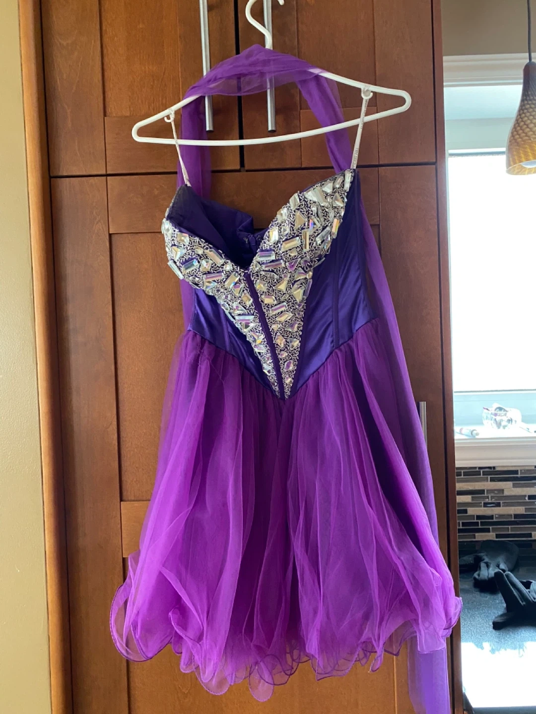 Selling a lovely two toned purple Sherri Hill dress! It's a size 4 and features beautiful detailing on the bodice. The dress has a tulle skirt. It's in great condition and ready for a special occasion