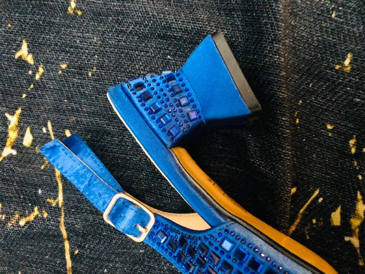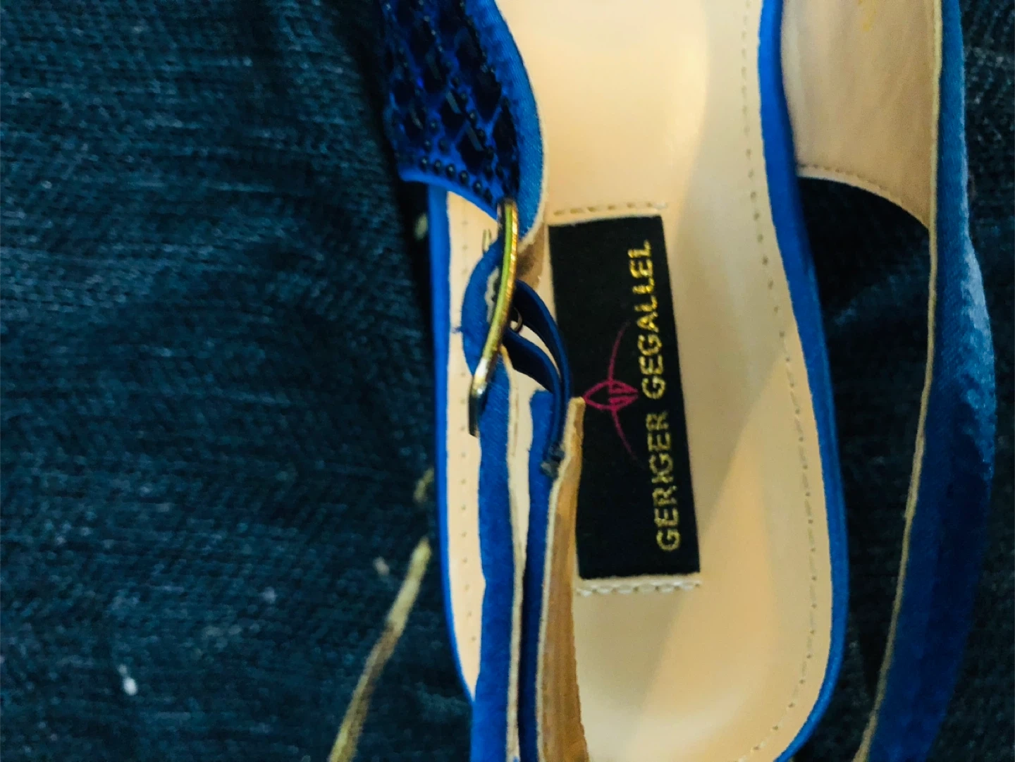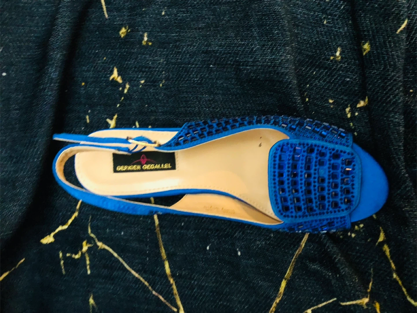 Gorgeous blue slingback flats from Geriger Gegallel. These shoes feature a beautiful embellished design on the toe and a convenient ankle strap with a buckle. Dress up any outfit with these stylish flats!