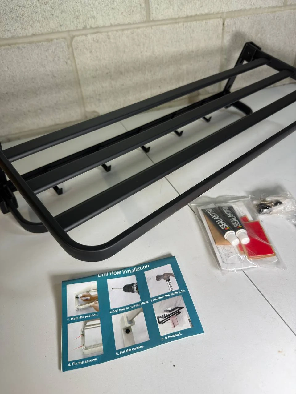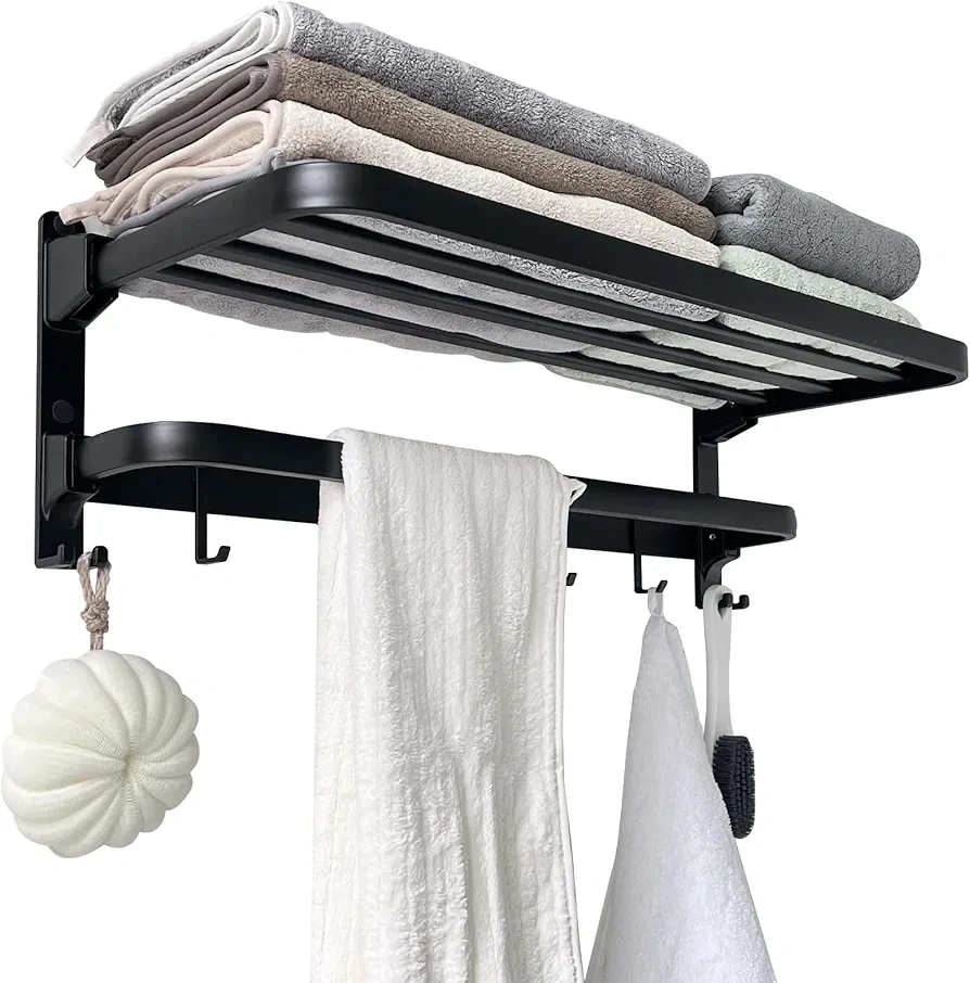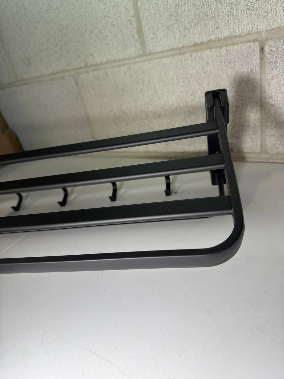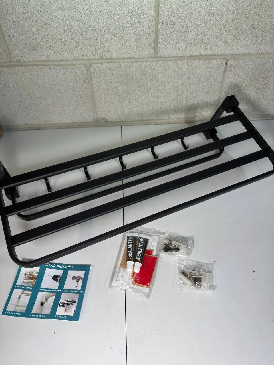 113‼️ All sales are final – no returns 💵 Cash only 🚚 Free Delivery In GTA over 50$ Condition: NEW 21inch ‼️ Modern aluminum towel rack, featuring a foldable double-layer shelf with 2 large and 5 small hooks for towels, clothes, and accessories. Rustproof and corrosion-resistant, ideal for humid bathrooms. The matte black brushed finish adds a sleek, modern look, and the space-saving foldable design makes it perfect for homes, hotels, or dorms. Easy wall installation with included hardware.