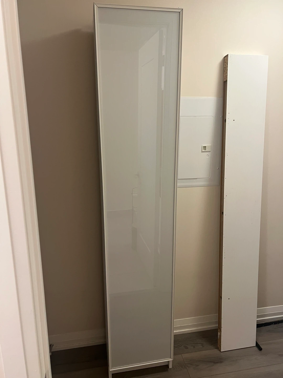 Selling an IKEA Pax wardrobe frame with a glass door. It's in great condition and ready to organize your space! Perfect for adding extra storage to any room. The frame is sturdy and the glass door adds a touch of elegance