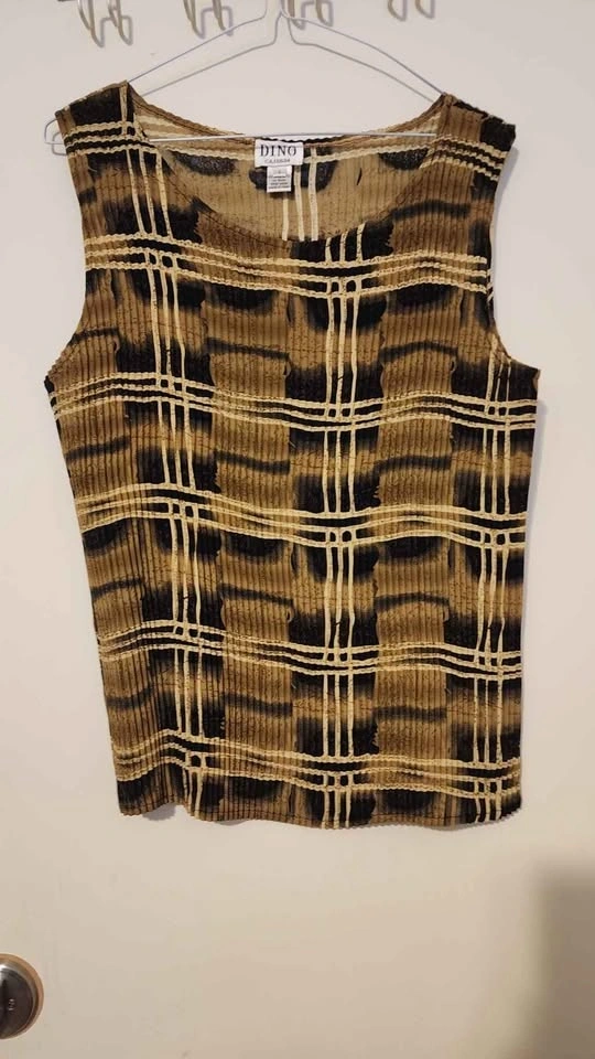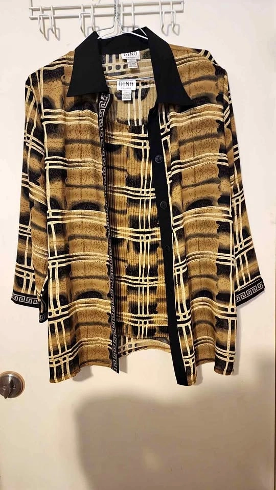 Step back into the 90s with this stunning two-piece "Dino" twin set. It features a unique micro-pleated/crinkle texture and an earthy abstract grid print, making it a perfect blend of vintage sophistication and Y2K trend. The fabric is lightweight, travel-friendly (wrinkle-resistant!), and has a beautiful stretch.
