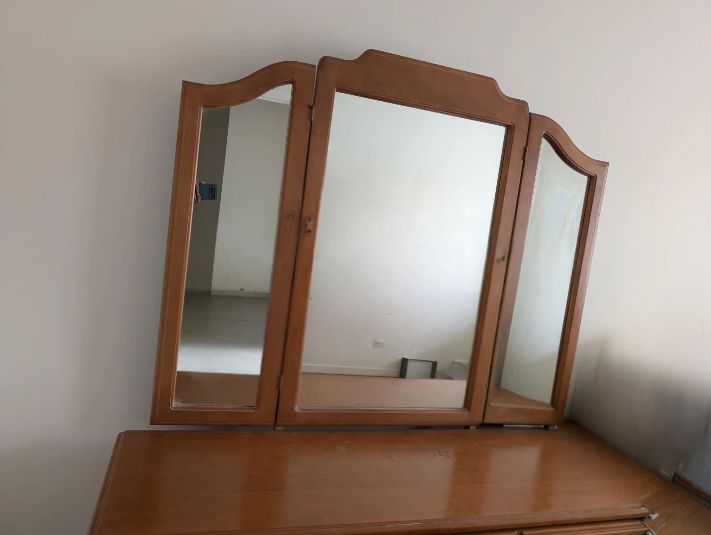 Wooden Dresser with Tri-Fold Mirror