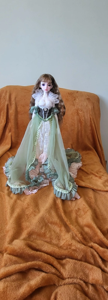 Okay BJD lovers — here’s a gorgeous dress set made to fit 1/4 MUXI body BJDs (or similar-sized dolls). Perfect for anyone looking to glam up their girl with some delicate, fantasy-inspired fashion. I have added pictures with and without the Corset, so you can see the style of the top.