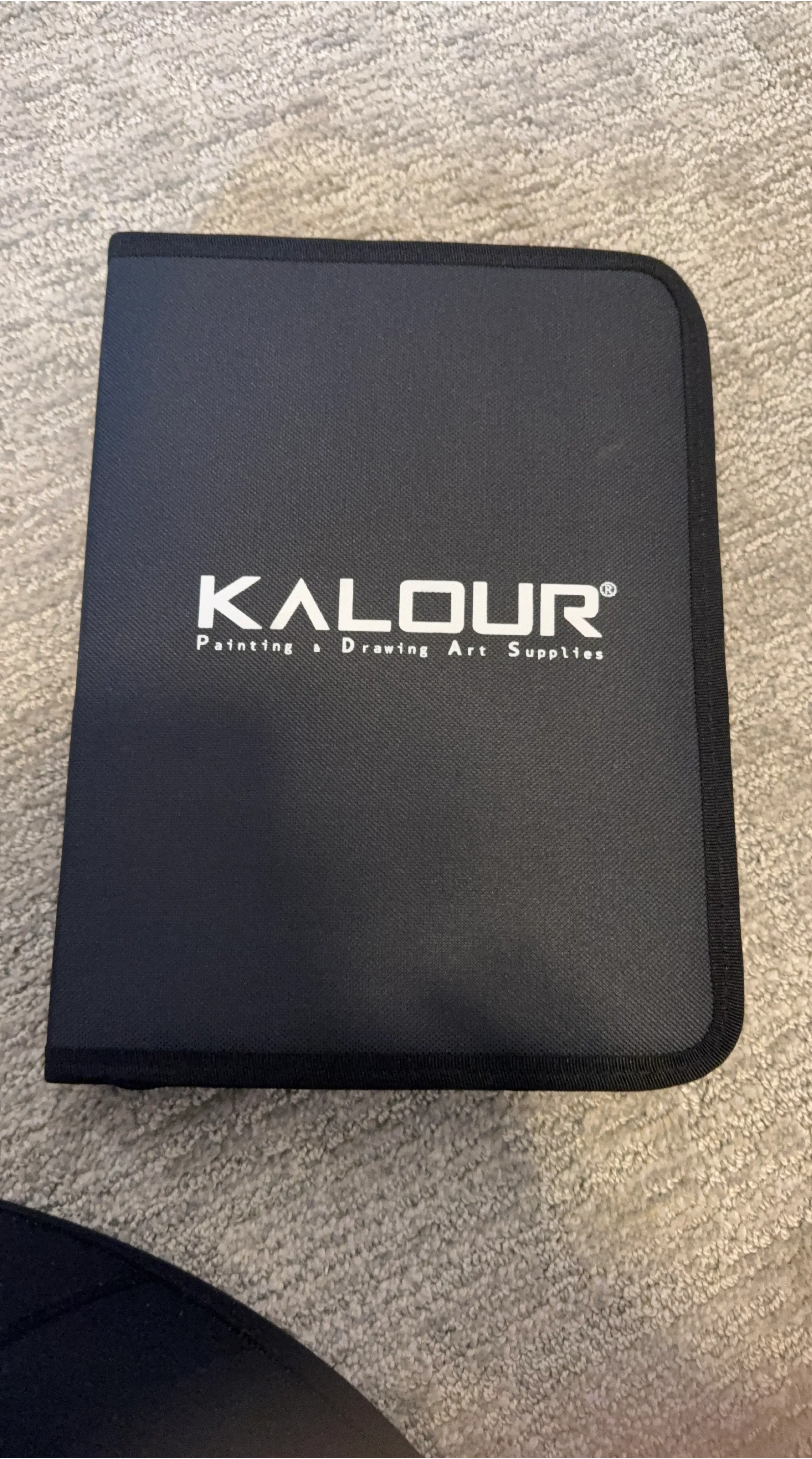 This Kalour art supplies set includes a variety of drawing pencils, colored pencils, and charcoal sticks. It also comes with a watercolor pad, a coloring book, and a sketchbook.
