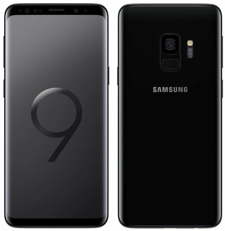 Black Samsung Galaxy S9 smartphone. It's a sleek device with a modern design. This phone offers advanced camera capabilities and a stunning display.