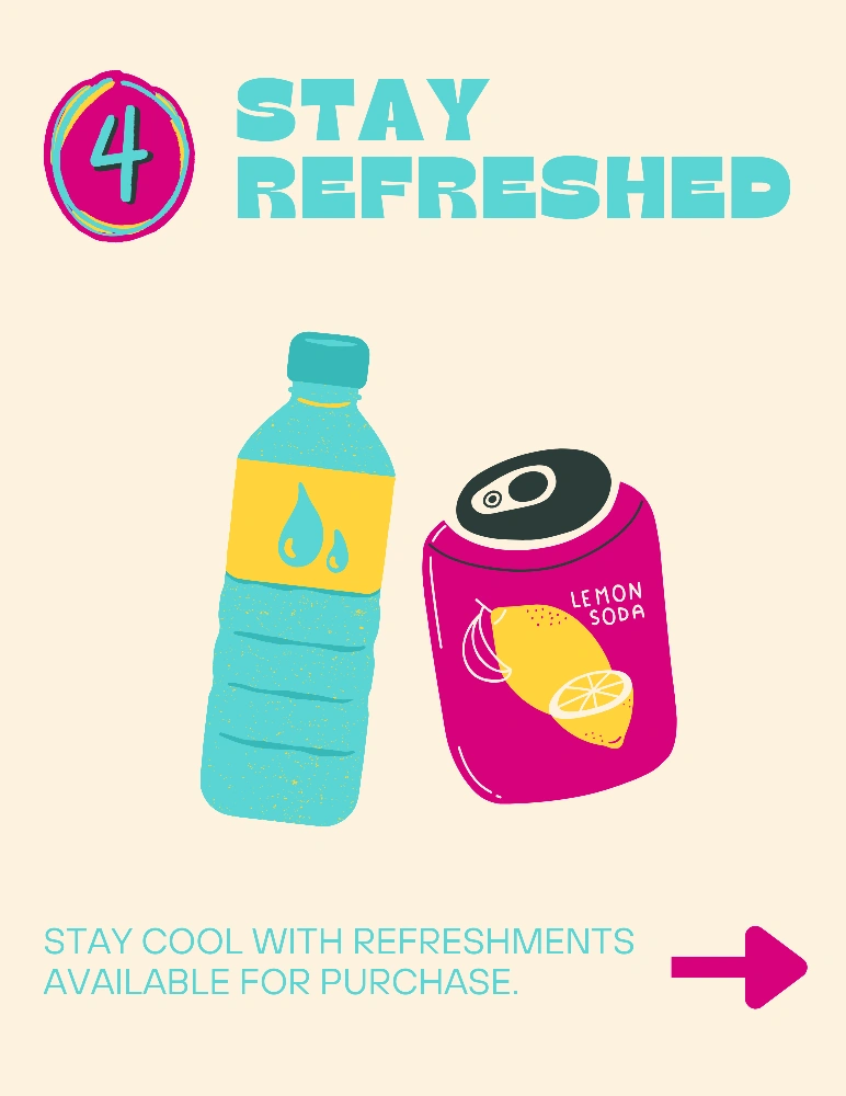 π Stay Refreshed: Stay cool with refreshments available for purchase.