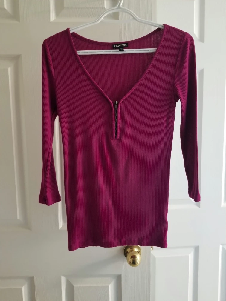 Express Ribbed with Zipper Magenta Purple Top - Ladies Small
