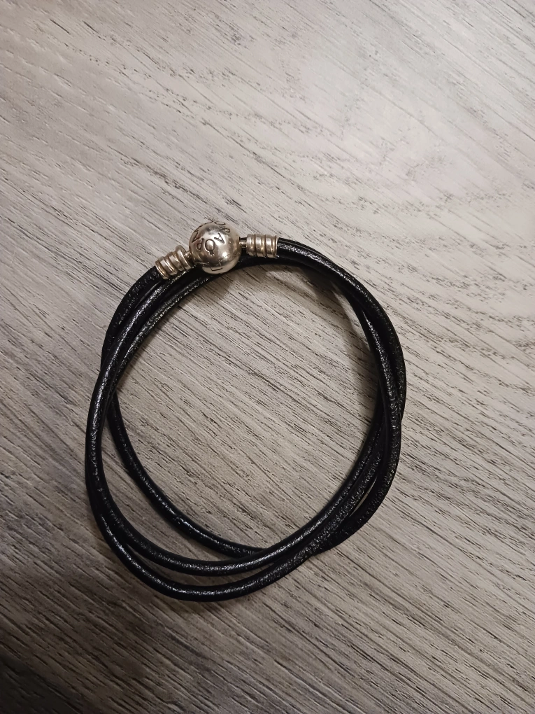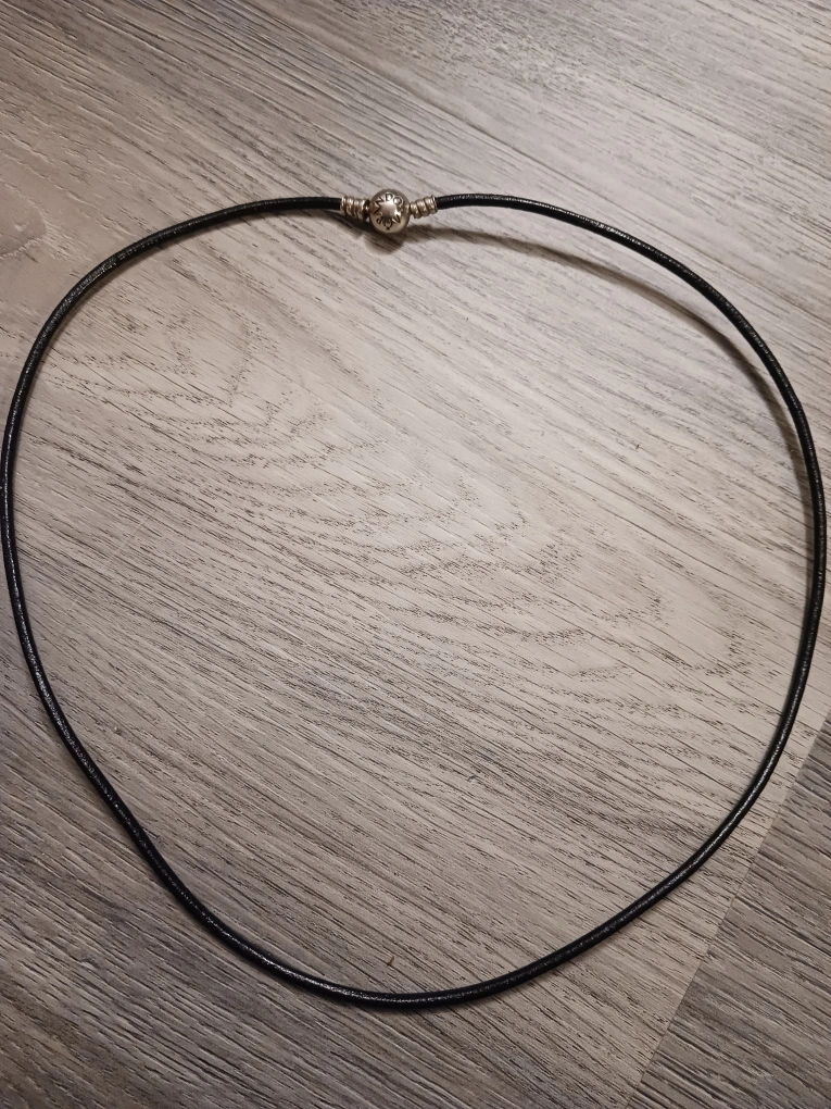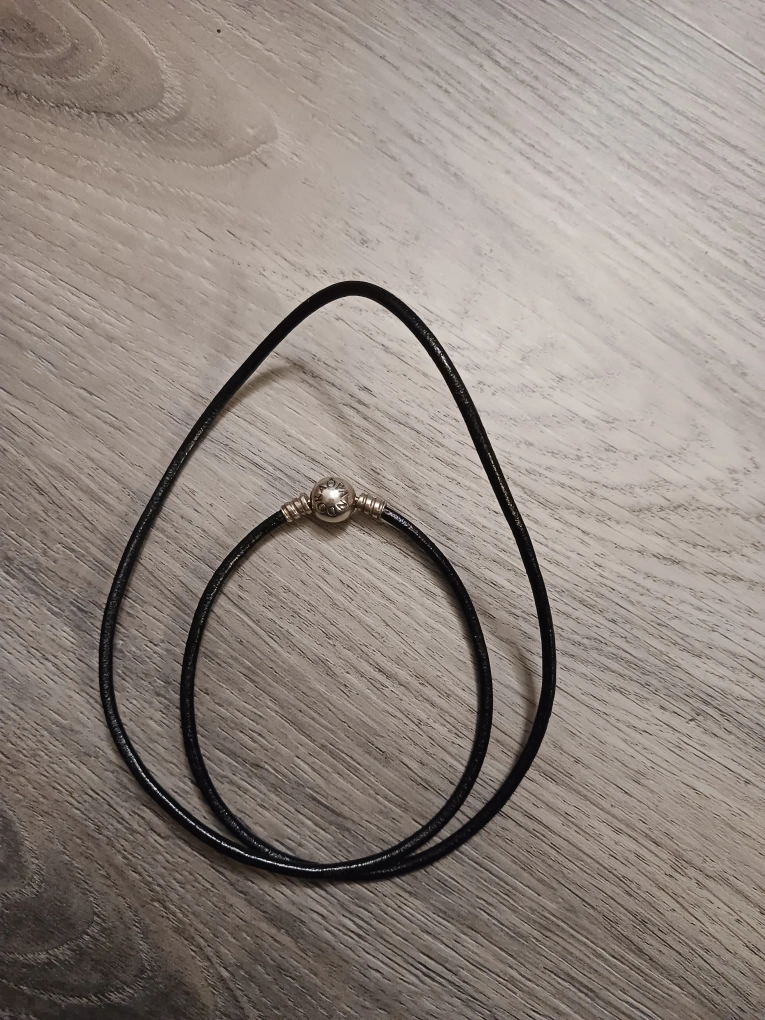 Genuine Pandora leather bracelet and necklace. Black leather cords. Silver-toned clasp. Great condition.