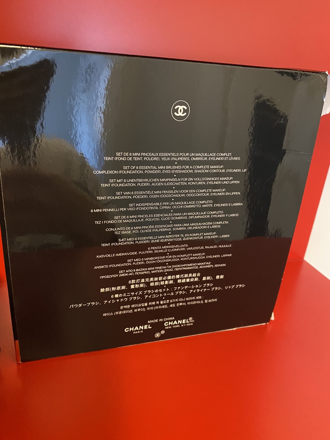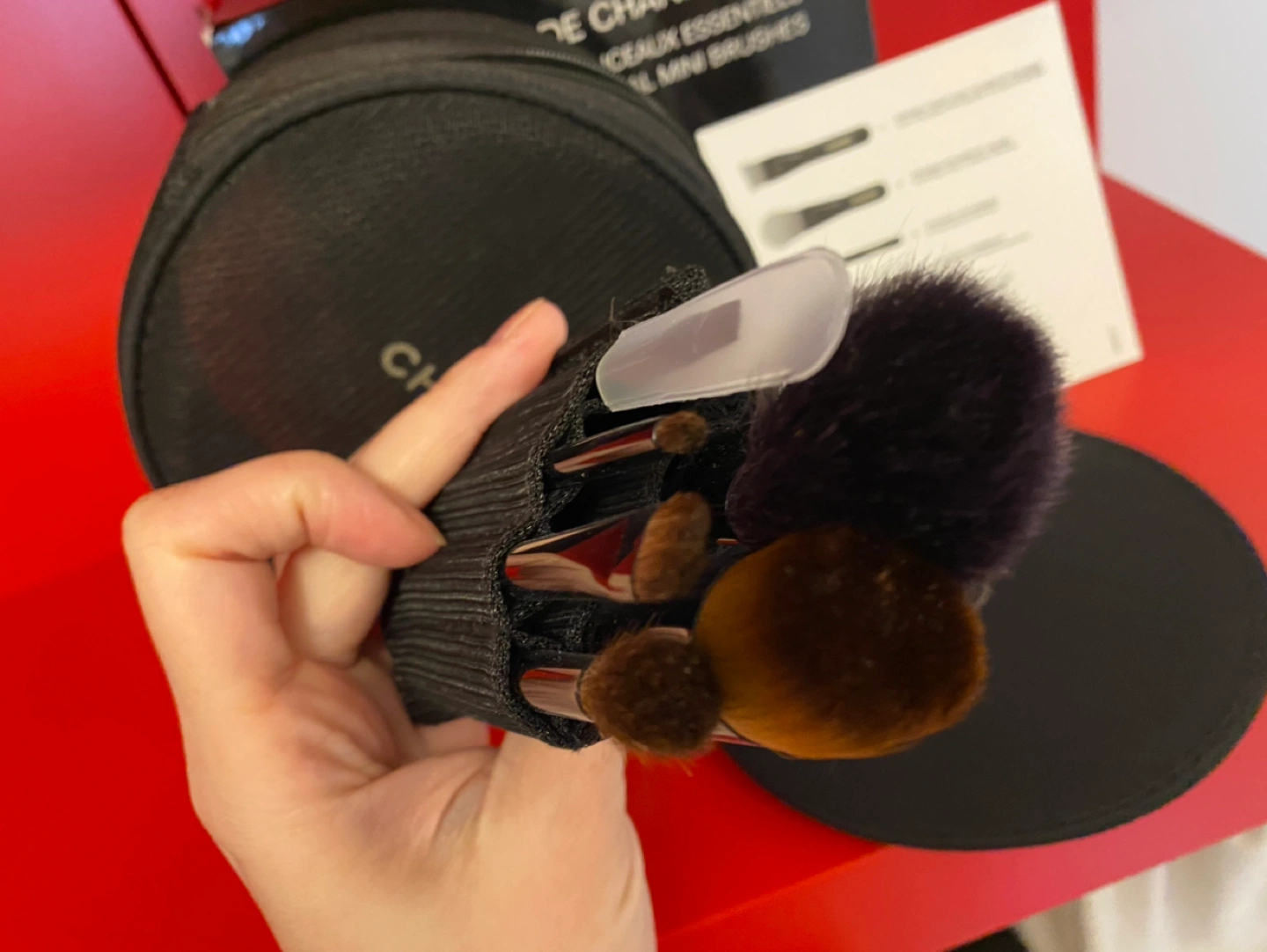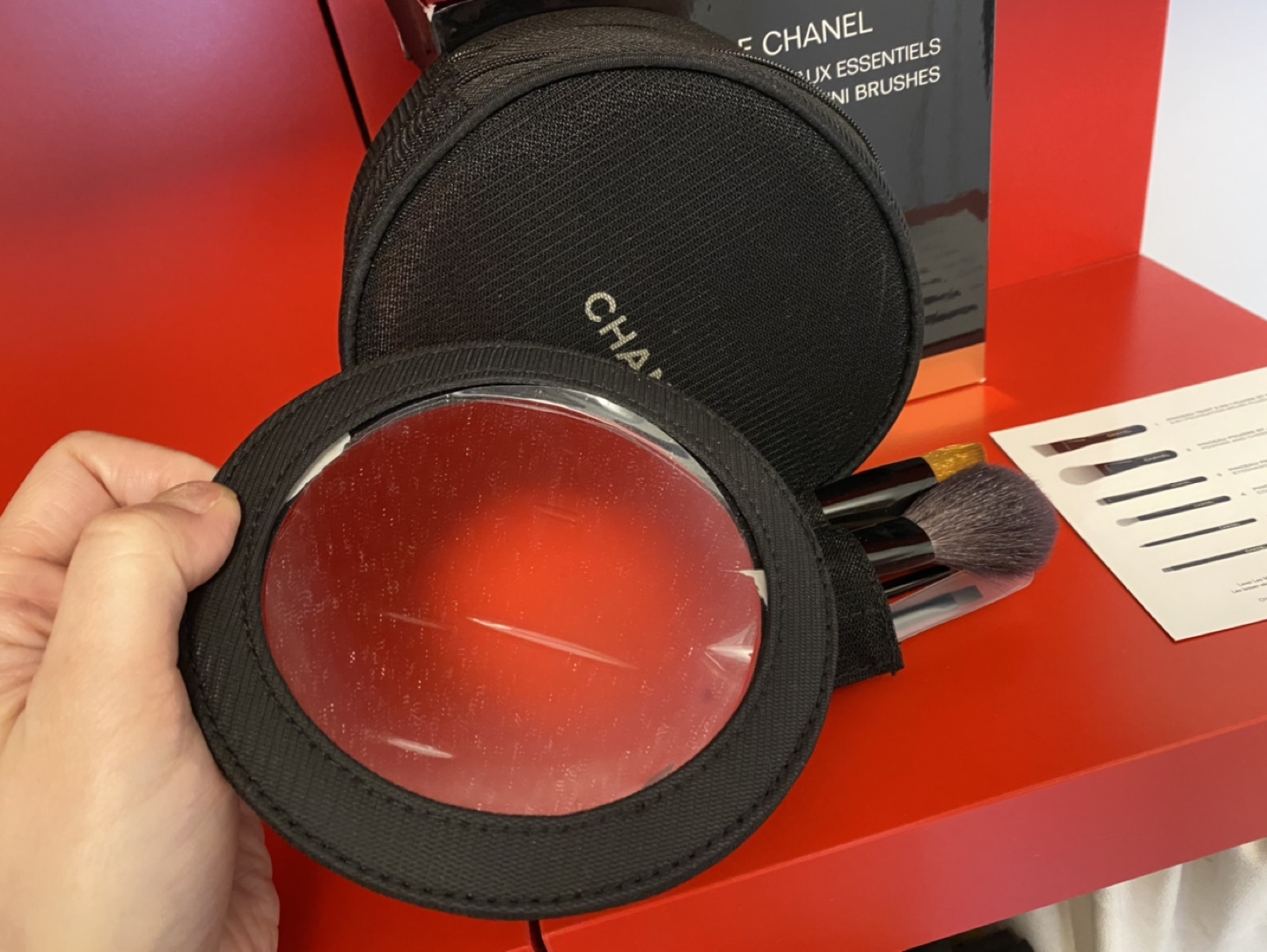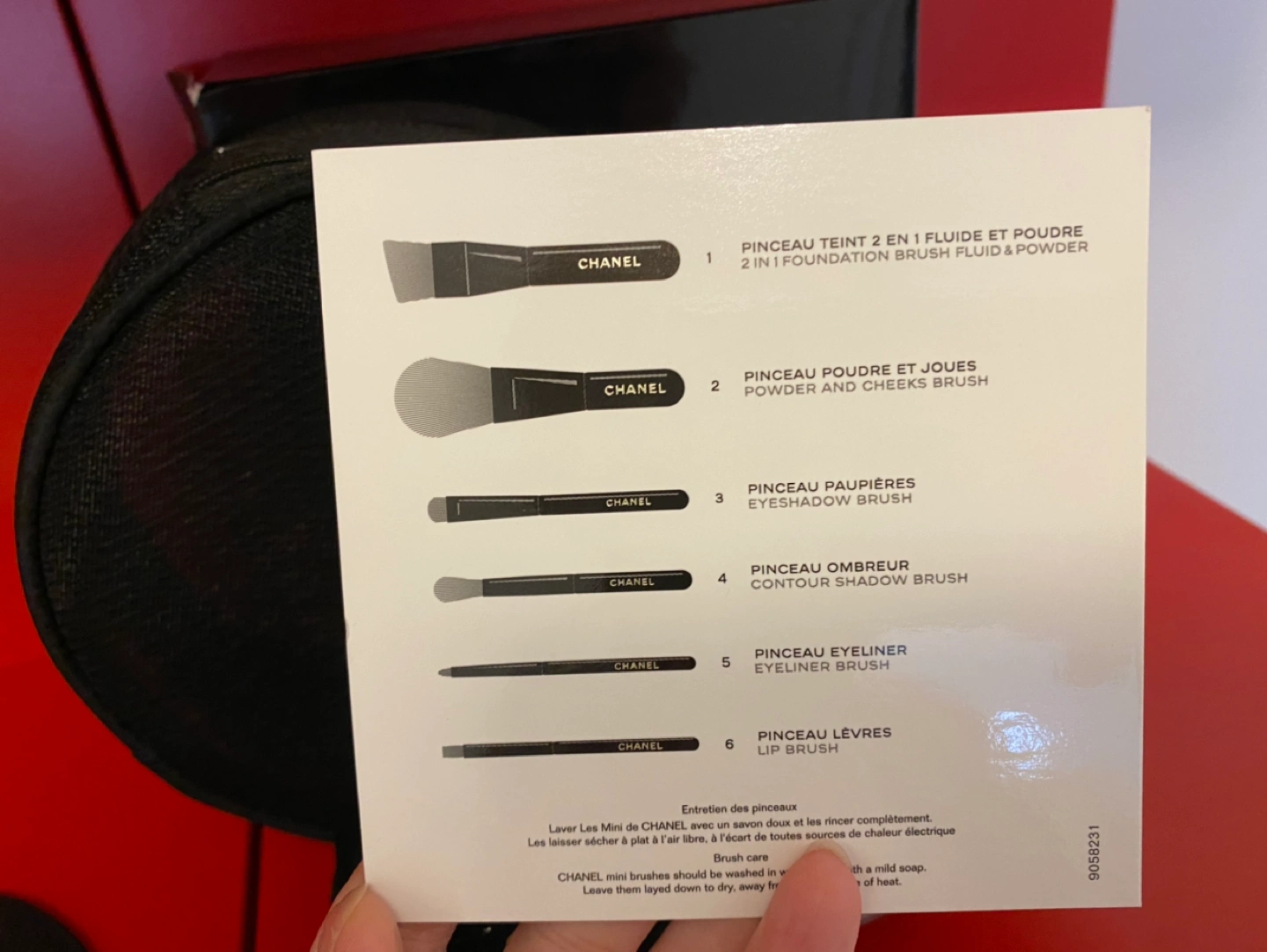 this Chanel package is still a lovely gift for a professional lady traveler. Oftentimes, accompanying bags are cheap, but this is a winning zip-up. Set includes a powder brush, face brush, eyeshadow brush, blending brush and angled shadow brush. As well as a mirror.