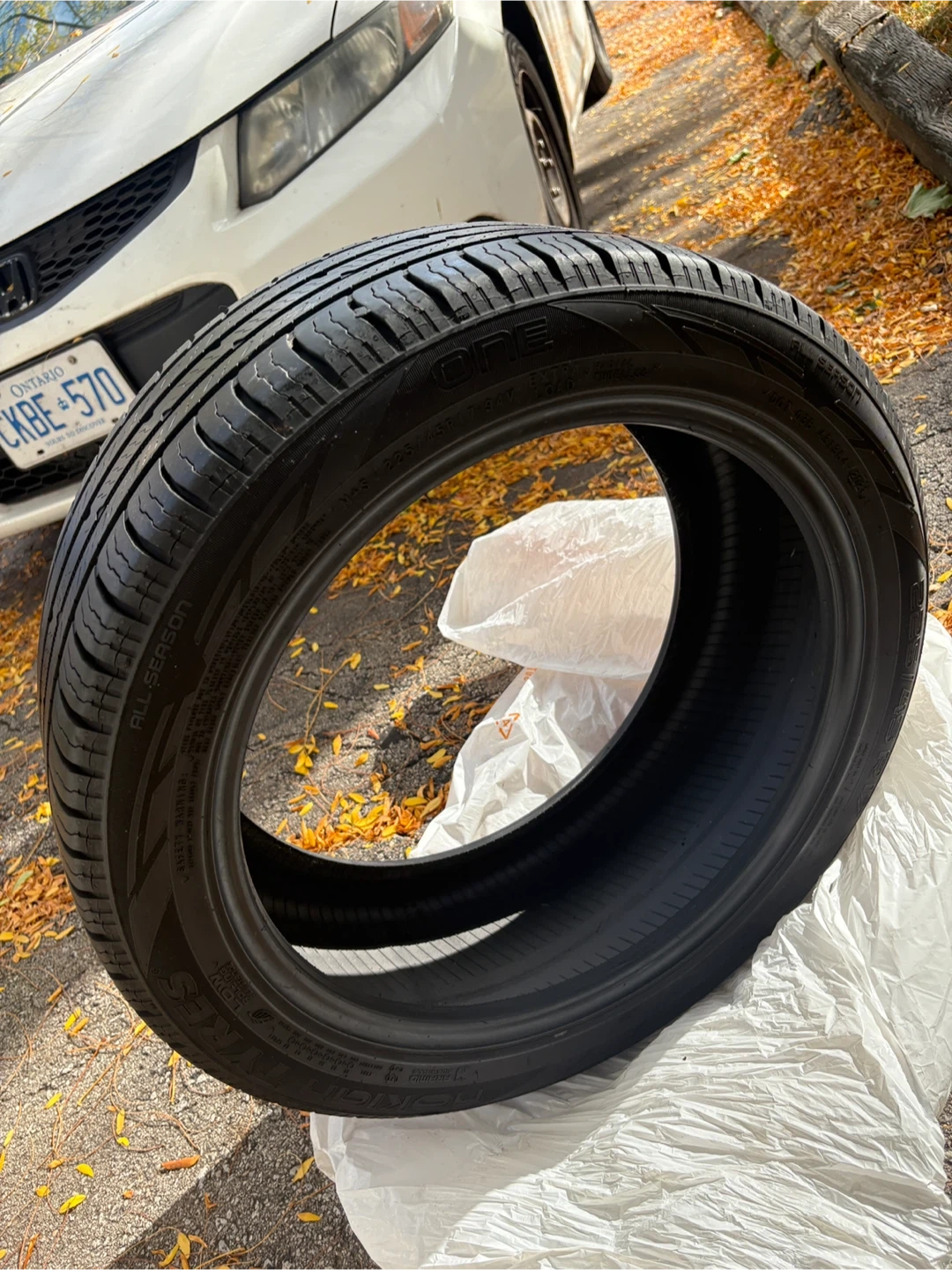10Selling 4 tires that's in good condition. It's an all-season tire with the size 225/45R17. Has almost full life on the tire, no damages or patches. Manufacturing date is 2021.
