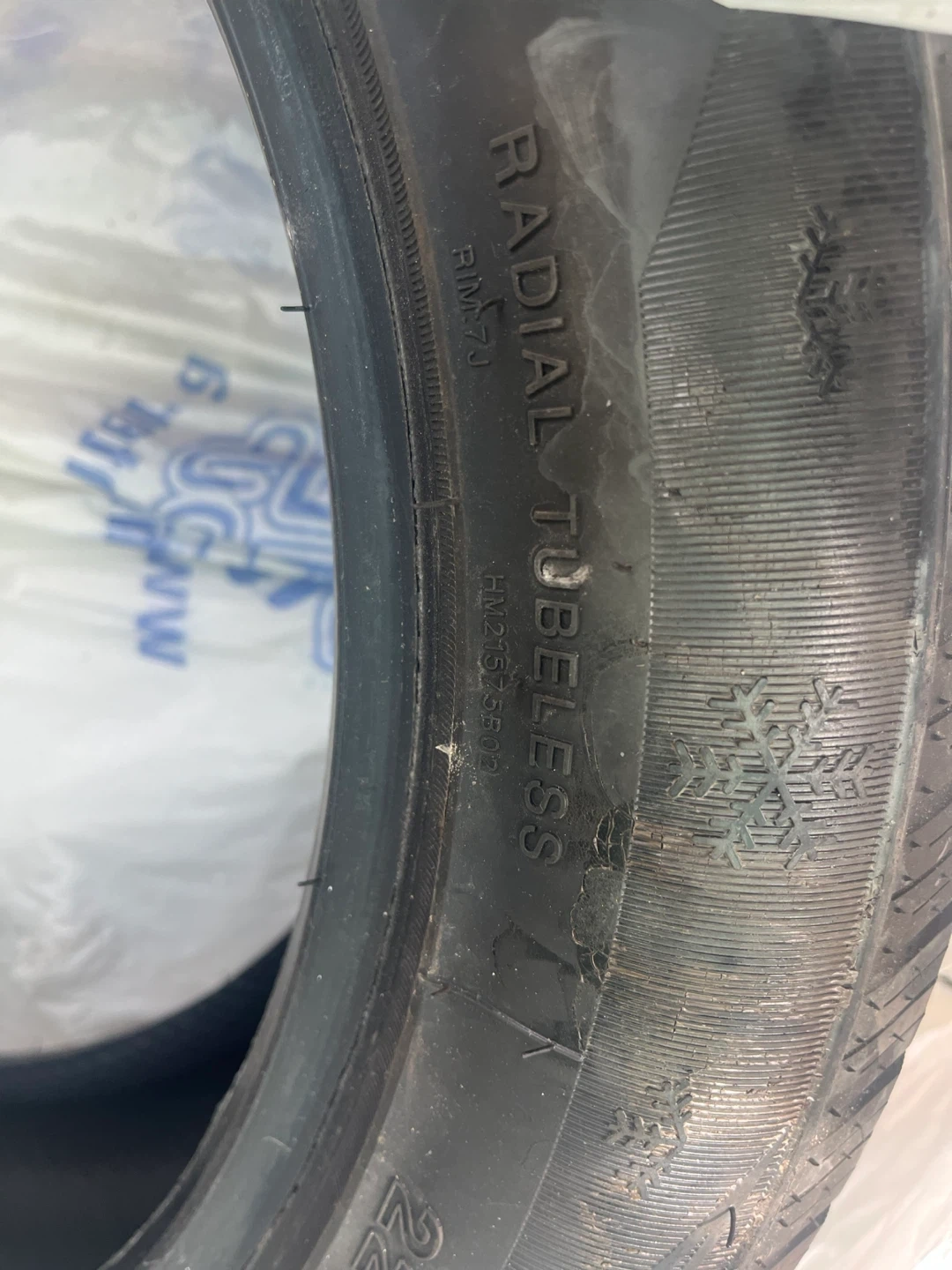 Selling a set of 4 used tire with the following specifications: 225/55R19 99H. It's a Snow Gripper studless tire, radial and tubeless. Almost new, used just one winter less than 1,000 km