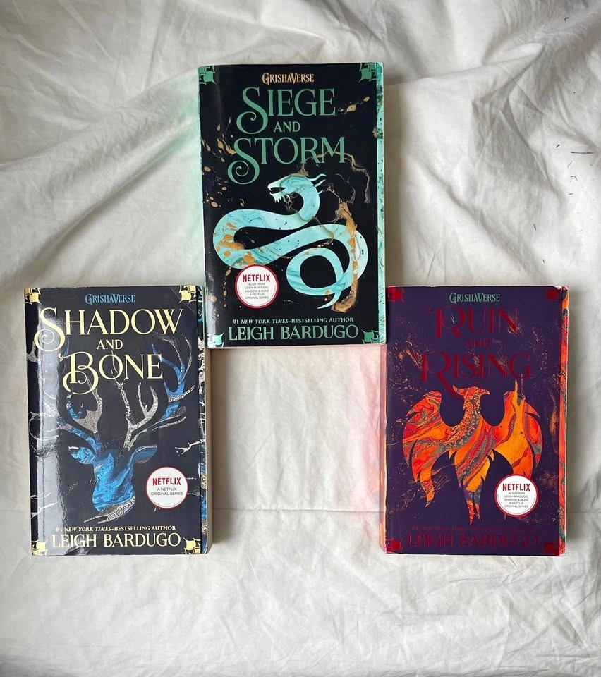 Shadow and Bone book set with the box. Read the book series then watch the series on Netflix. All 3 books sold together, none sold separately.