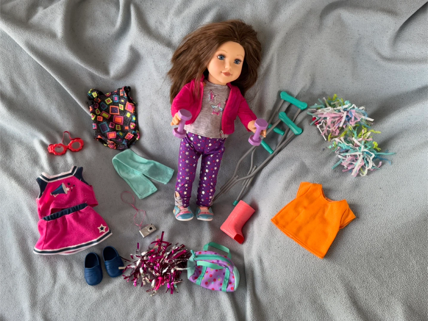 Sporty Cici is the most athletic girl you’d ever know. Even a broken leg can’t stop her from playing sports! Comes with cast and cruches, variety or outfits, googles, camera and cheer accessoires. Offers available!