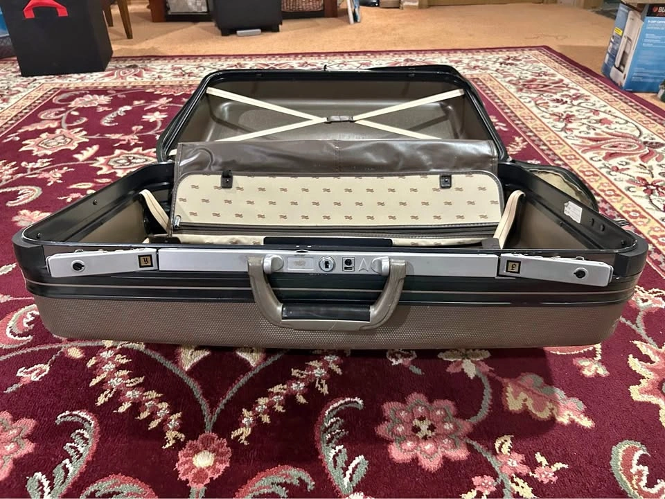 • I am also selling another suitcase of the same size and style, only with a different brand and colour — a Vintage V.I.P Maxima hard-shell (dark grey + brown camo cover)