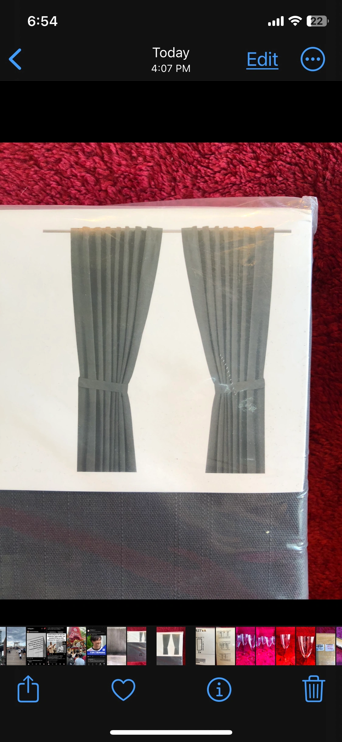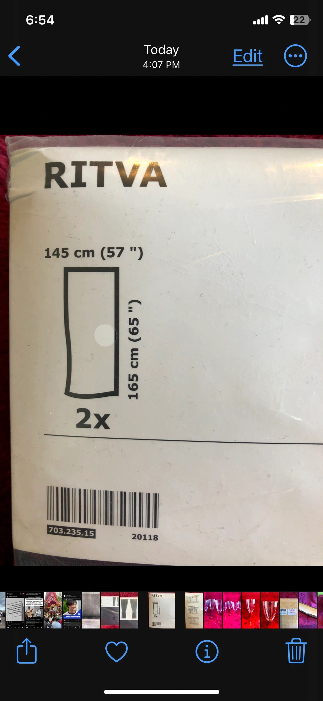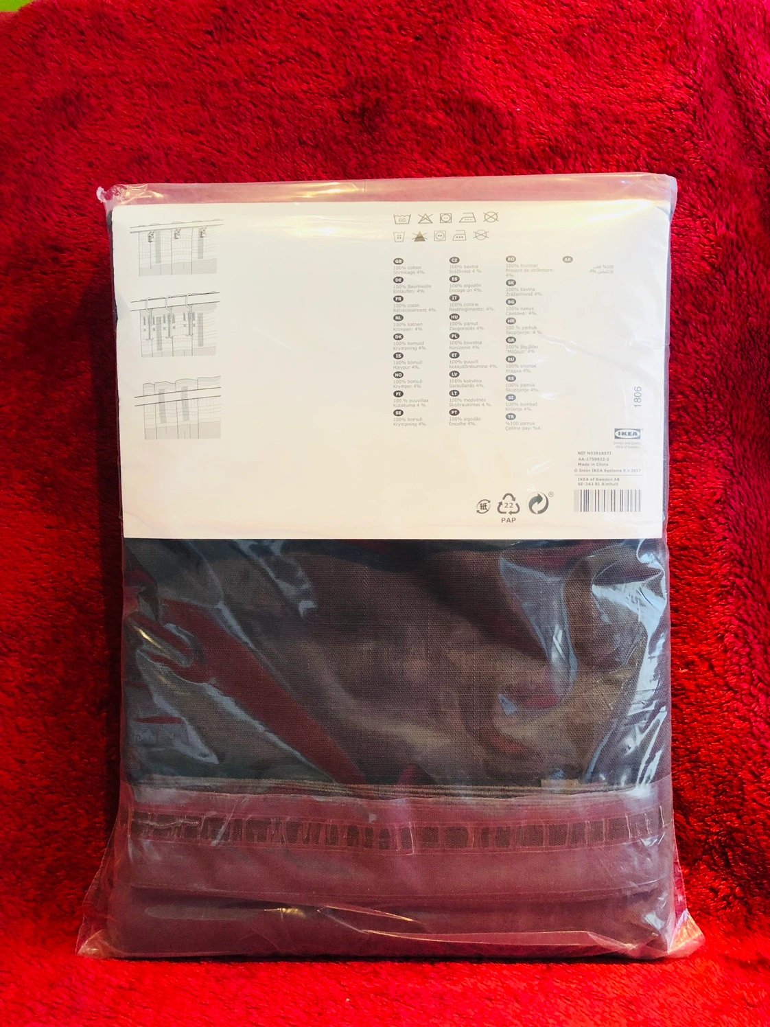 $40.00 per set after taxes, selling for$25.00. New, unused and in original packaging. I went with a sheer curtain instead, but I’m not into a 90 minute round trip drive back to IKEA to return them. Curtains with heading tape allow you to hang the curtain directly on the curtain rod using the rod pocket or tabs. You can also hinge the curtain onto a track rail using gliders and hooks. Using gliders and hooks usually creates a more formal and dressed-up feel, where hardware is not visible.